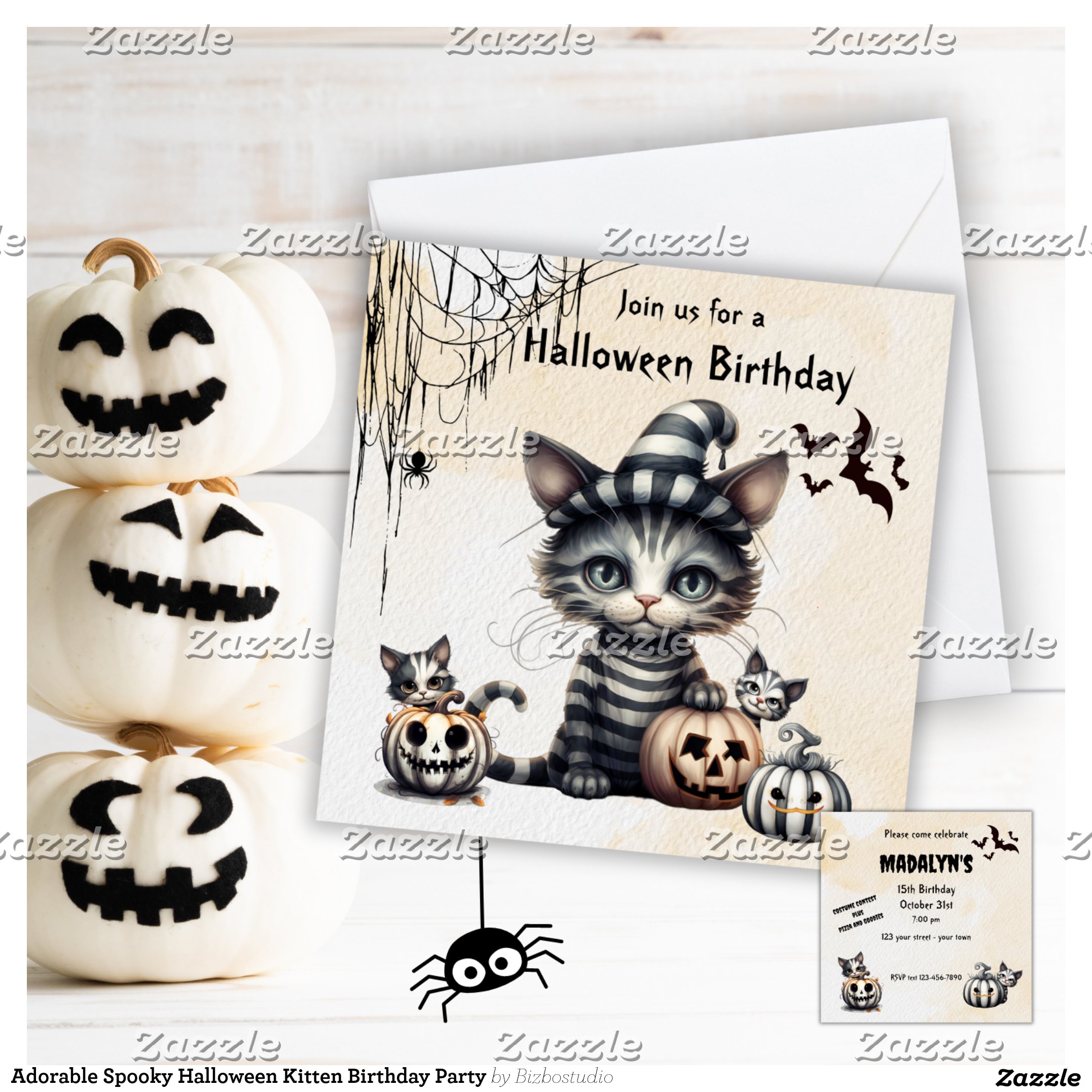 Adorable Spooky Halloween Kitten Birthday Party Invitation
