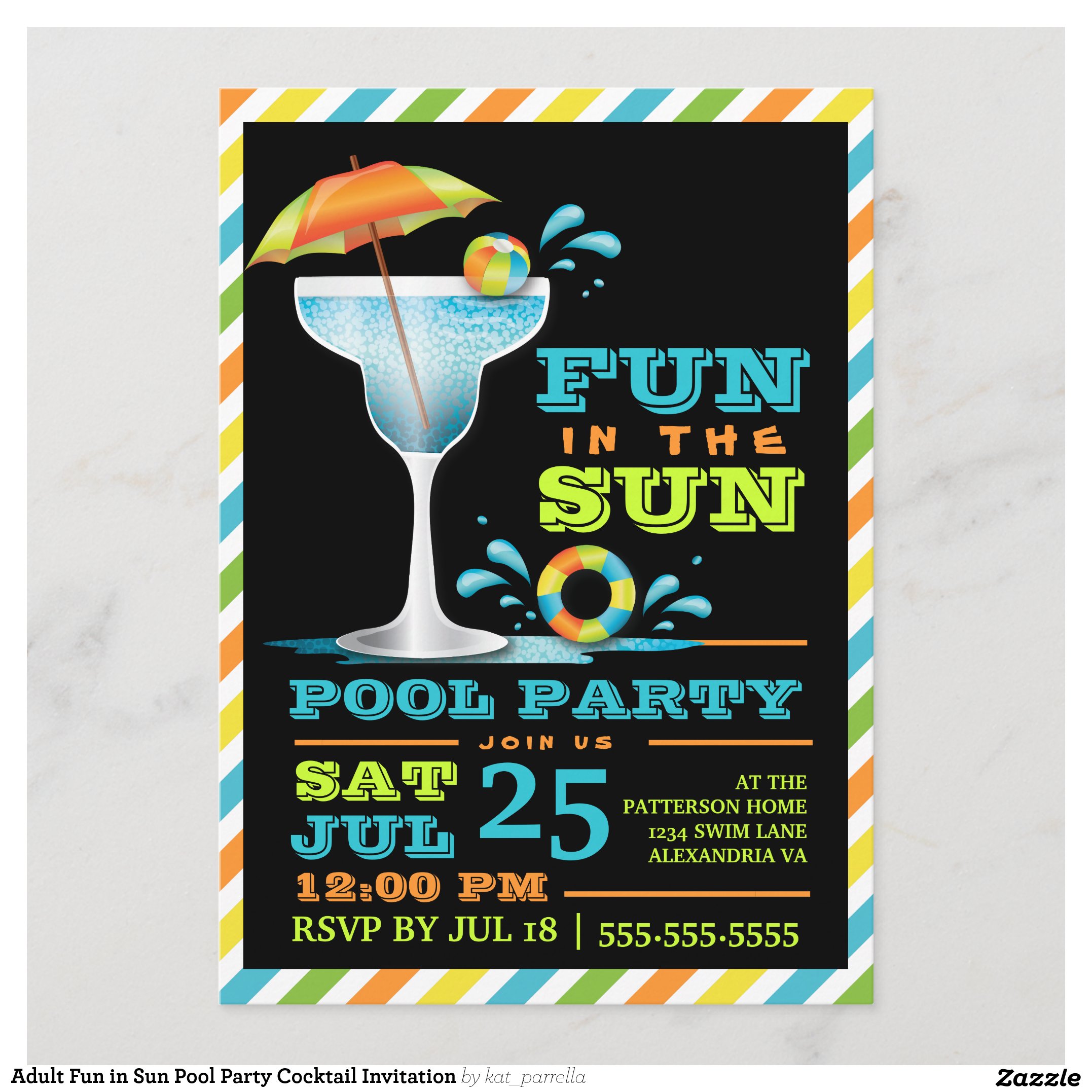 Adult Fun in Sun Pool Party Cocktail Invitation