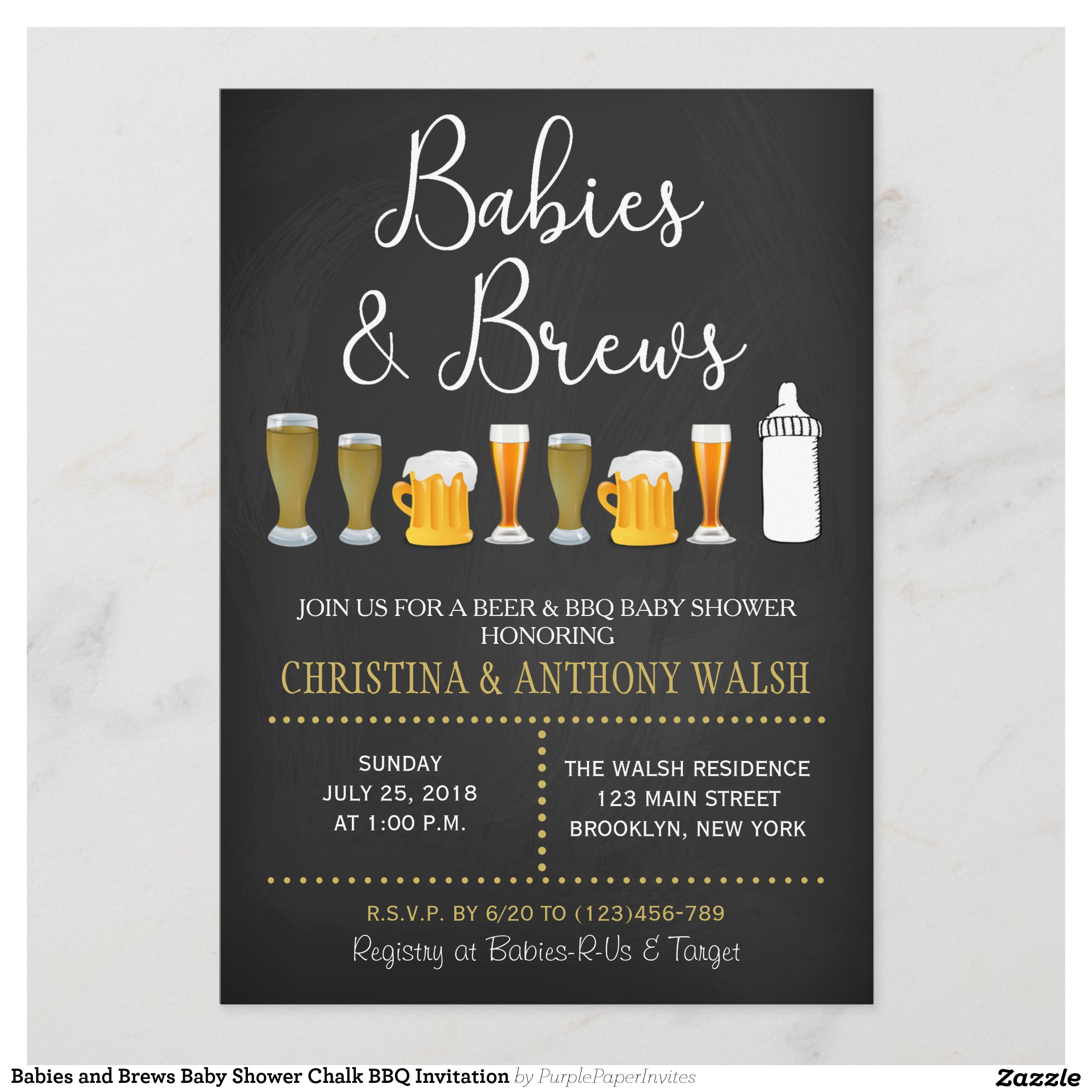 Babies and Brews Baby Shower Chalk BBQ Invitation