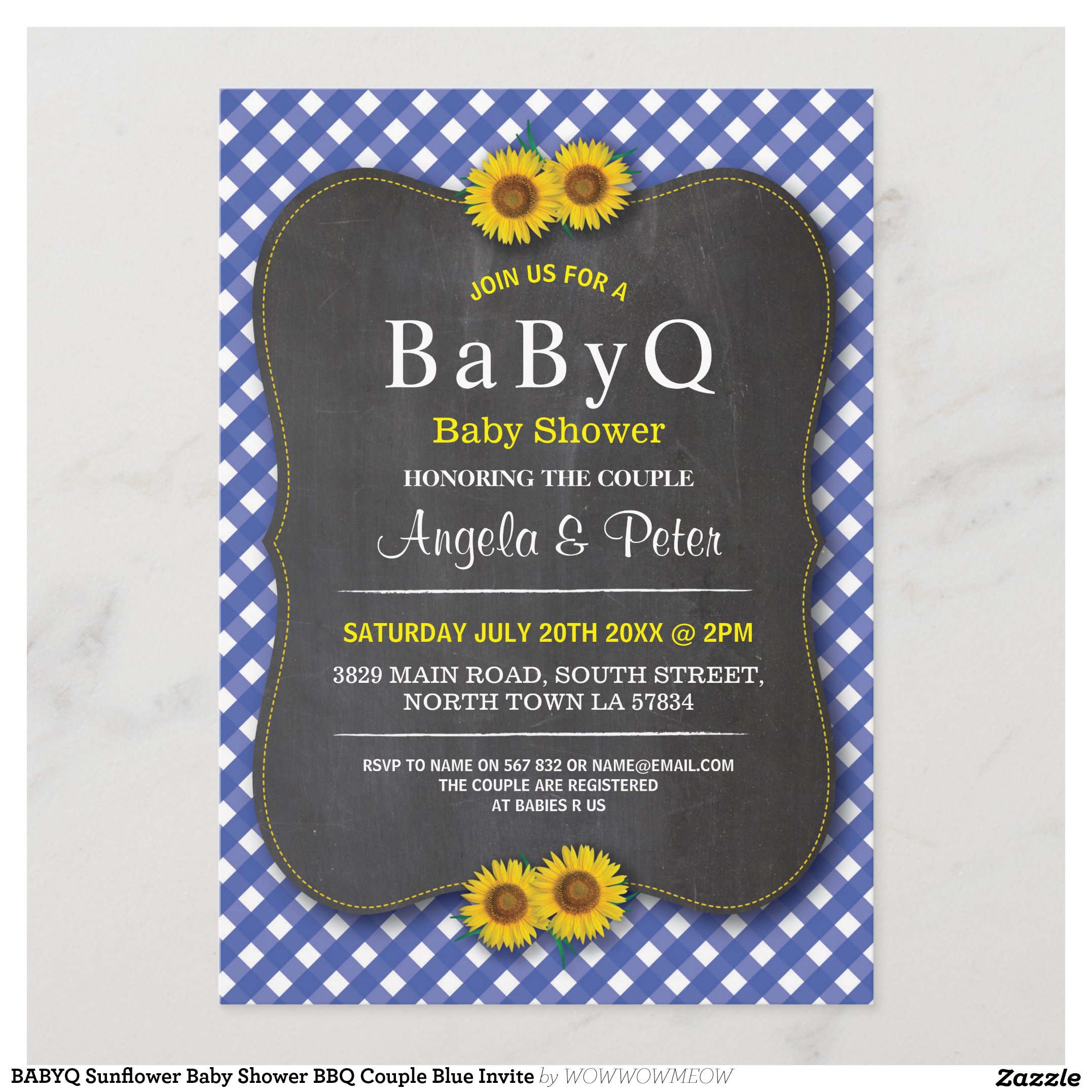 BABYQ Sunflower Baby Shower BBQ Couple Blue Invite
