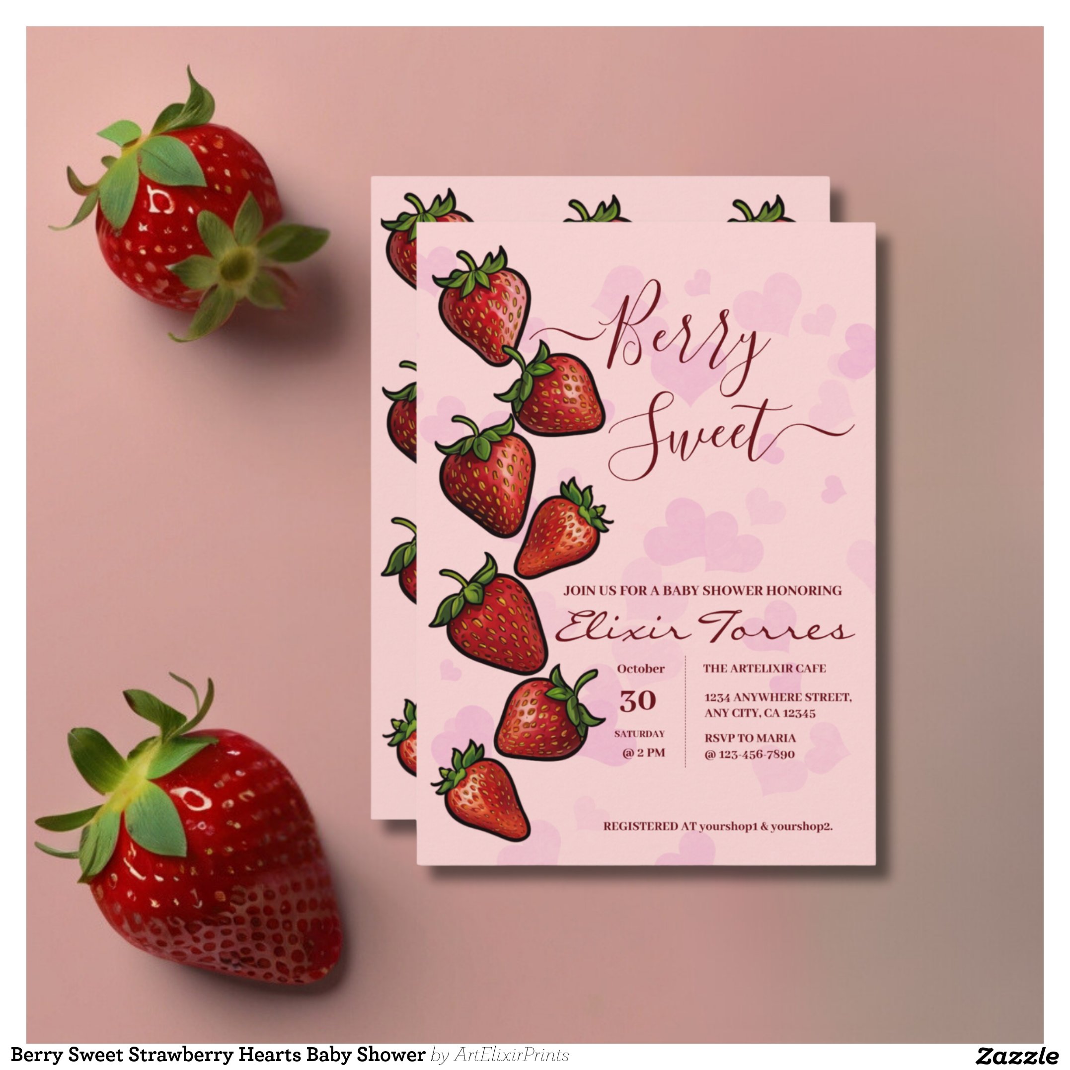 Be the first to review “Berry Sweet Strawberry Hearts Baby Shower Invitation”