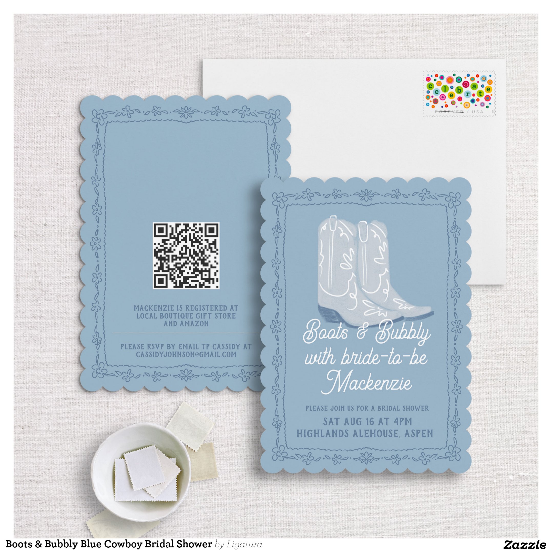 Boots & Bubbly Blue Cowboy Bridal Shower Invitation