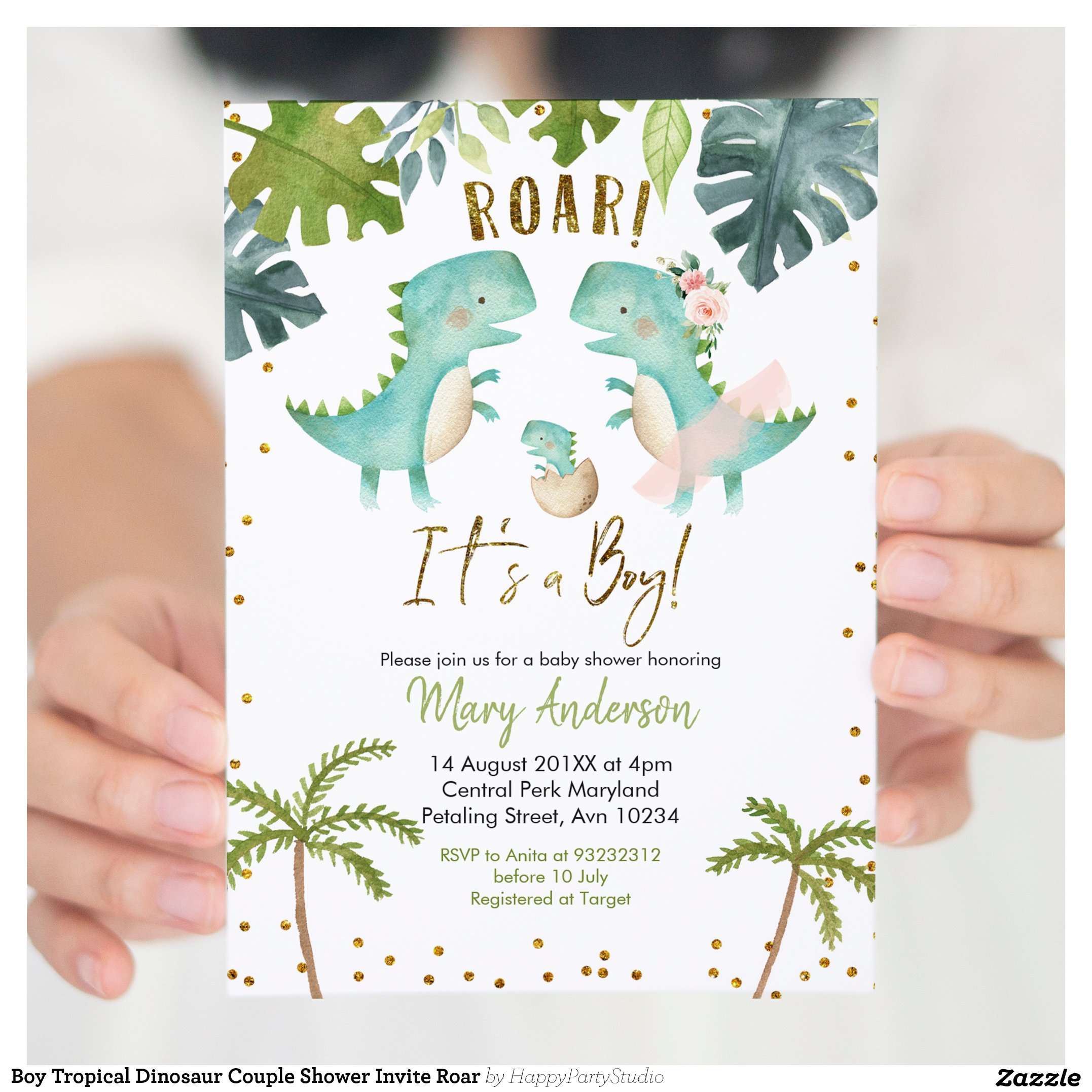 Be the first to review “Boy Tropical Dinosaur Couple Shower Invite Roar”