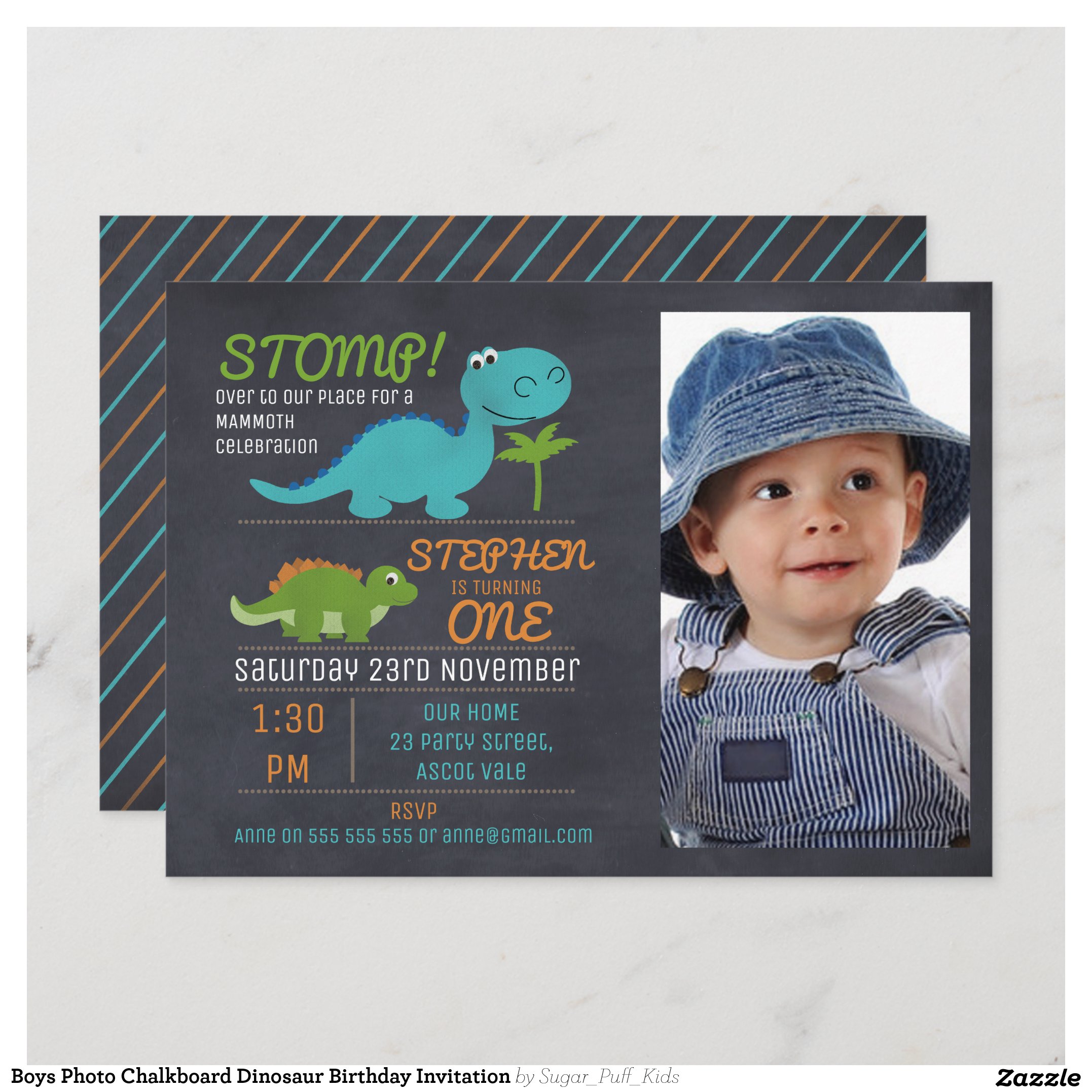 Boys Photo Chalkboard Dinosaur Birthday Invitation