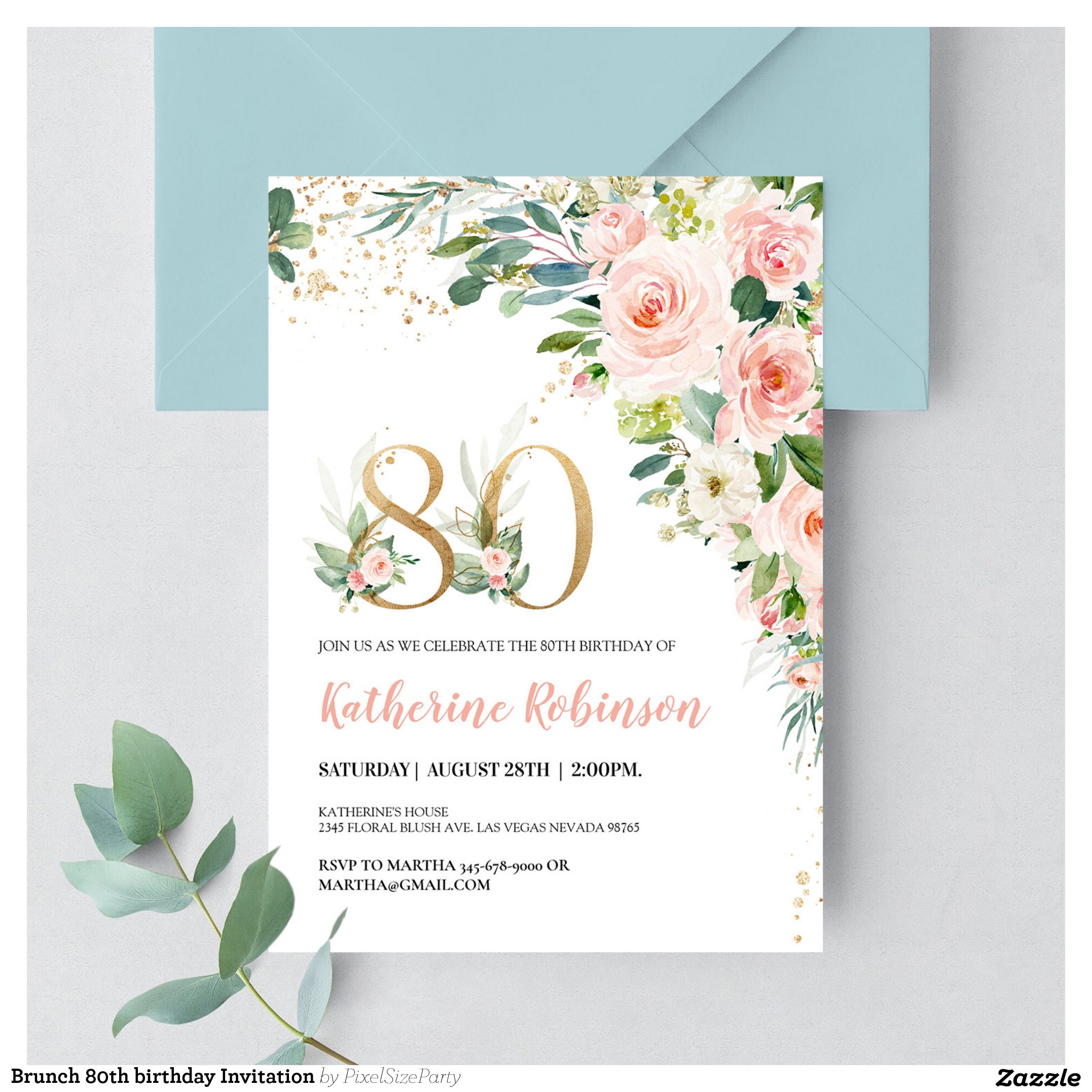 Brunch 80th birthday Invitation
