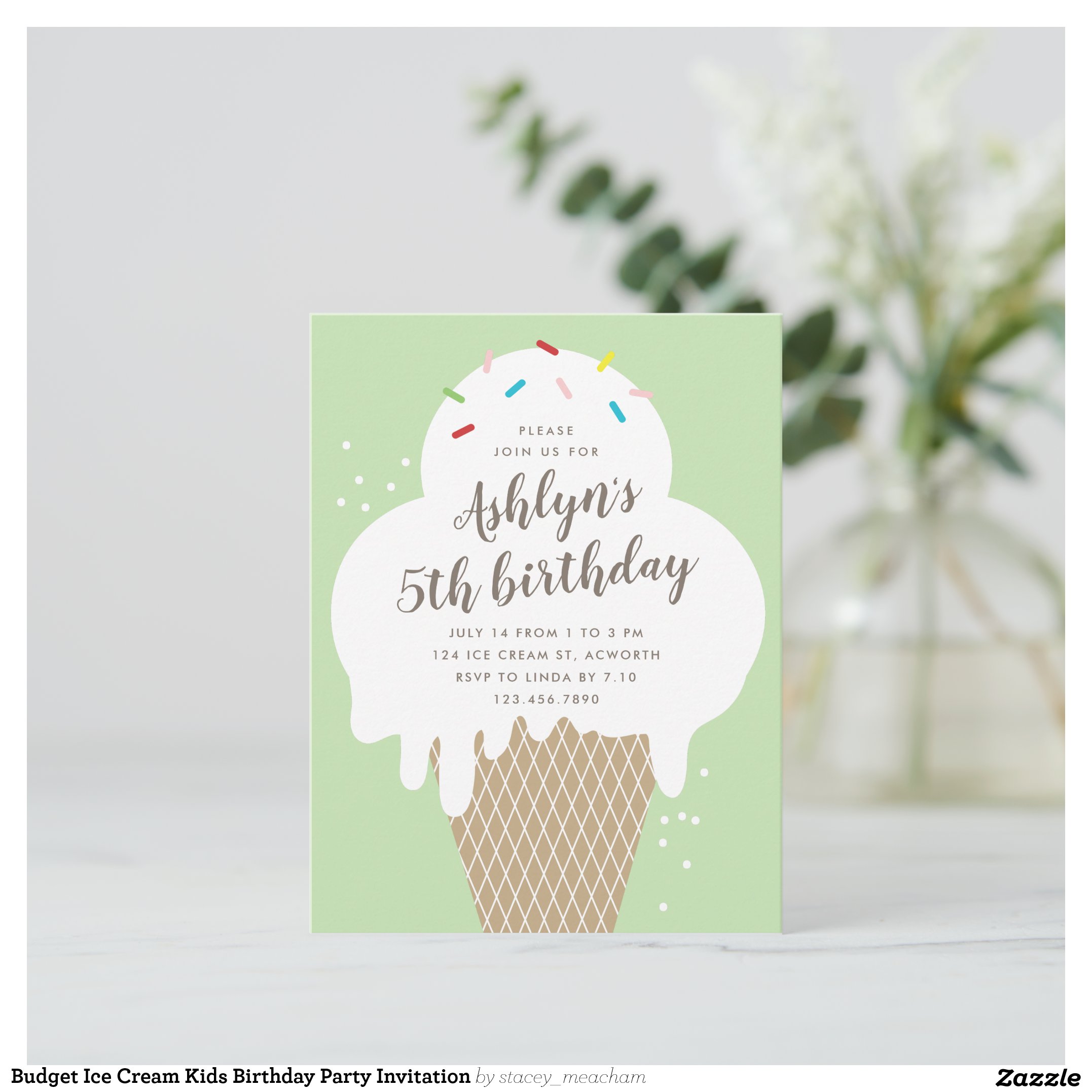 Budget Ice Cream Kids Birthday Party Invitation Postcard