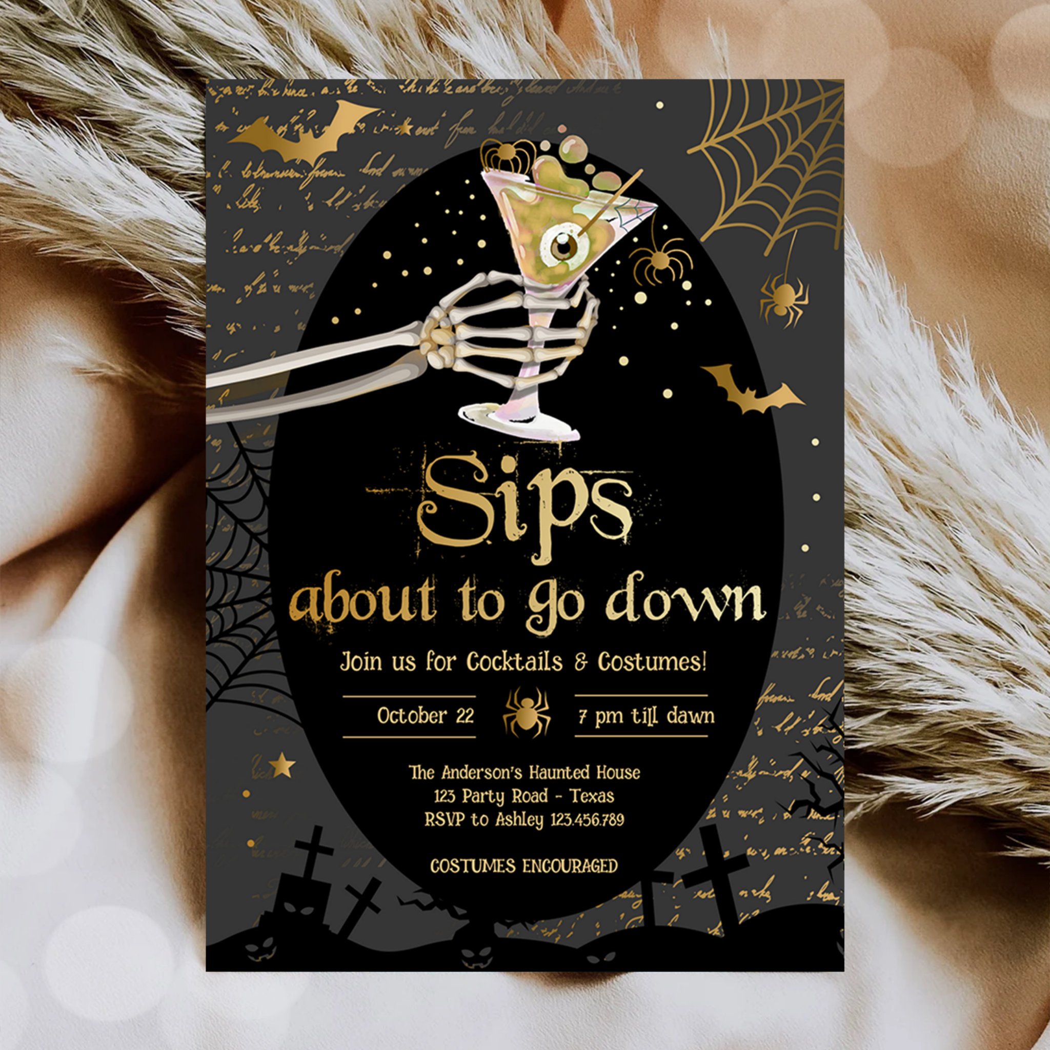 Cocktails and Costumes Brews Boos Booze Halloween Invitation