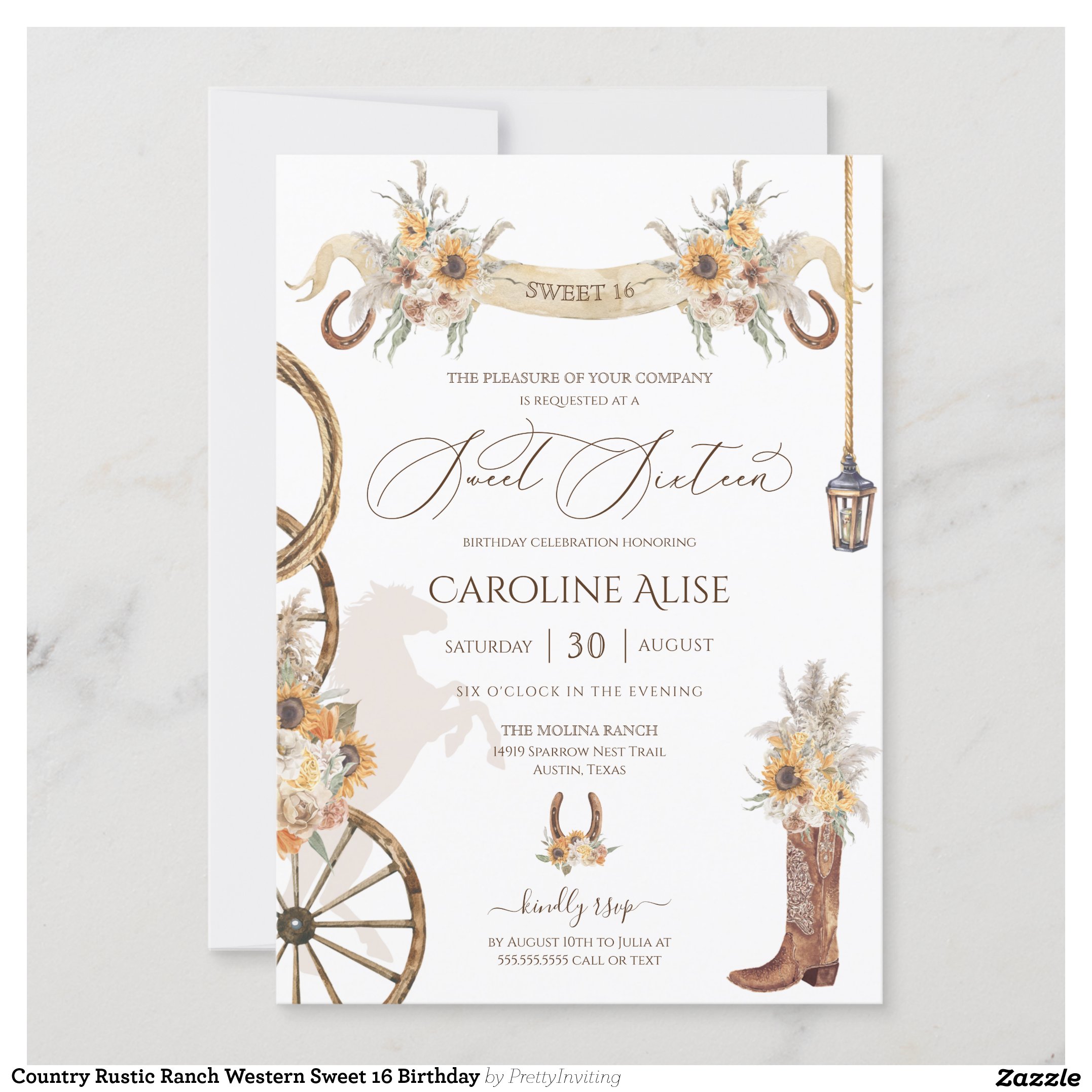 Country Rustic Ranch Western Sweet 16 Birthday Invitation