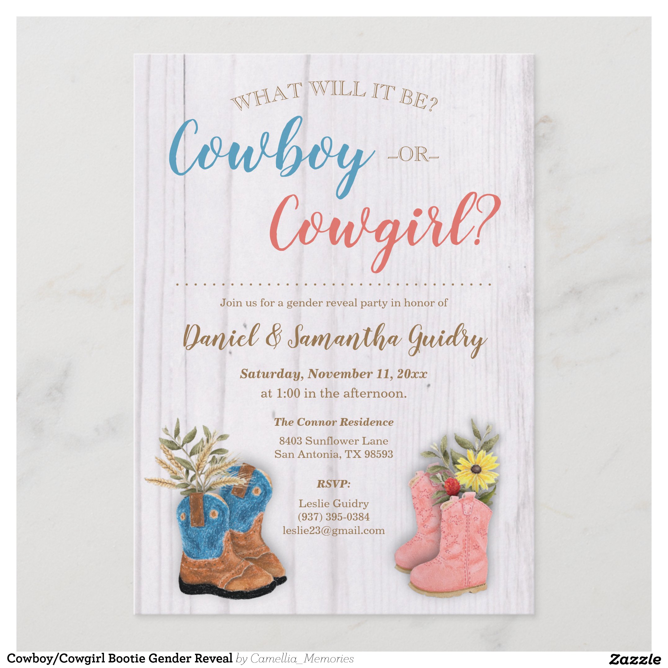 Cowboy/Cowgirl Bootie Gender Reveal Invitation