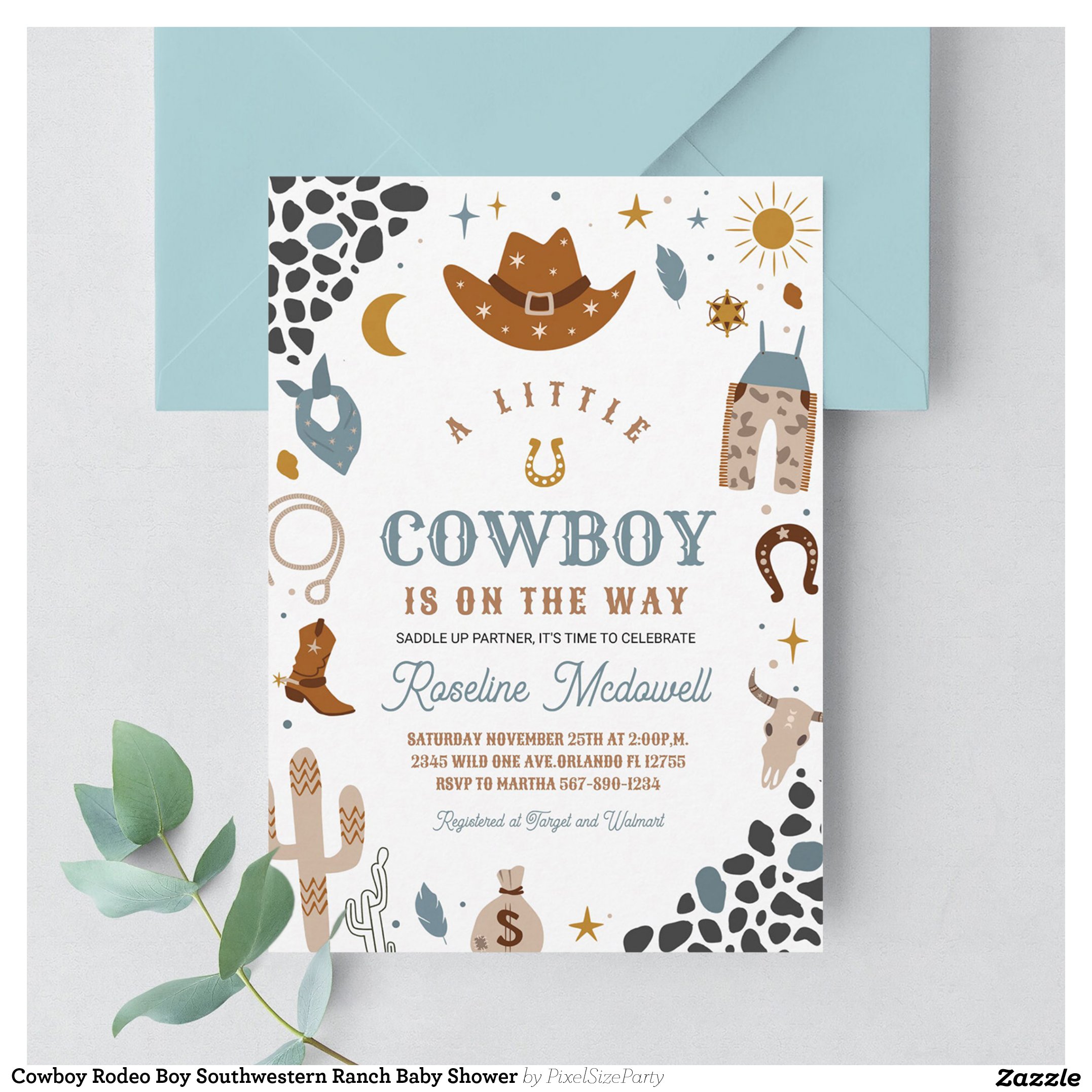 Cowboy Rodeo Boy Southwestern Ranch Baby Shower Invitation