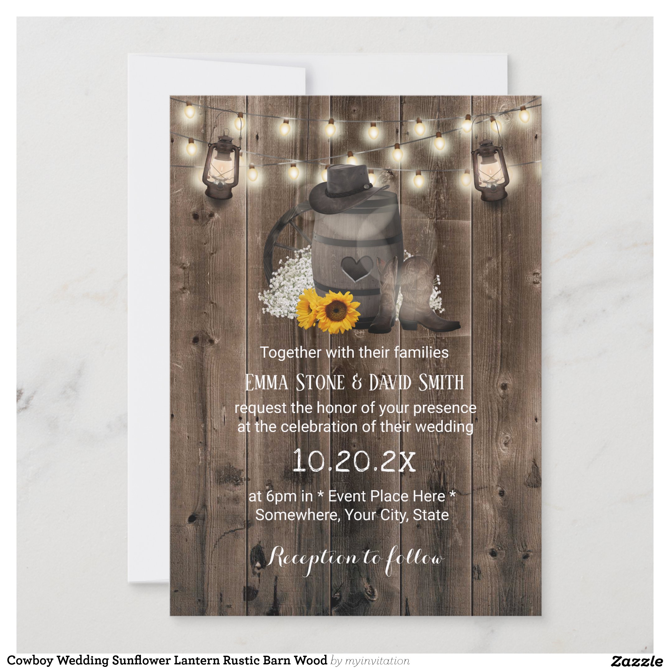 Be the first to review “Cowboy Wedding Sunflower Lantern Rustic Barn Wood Invitation”