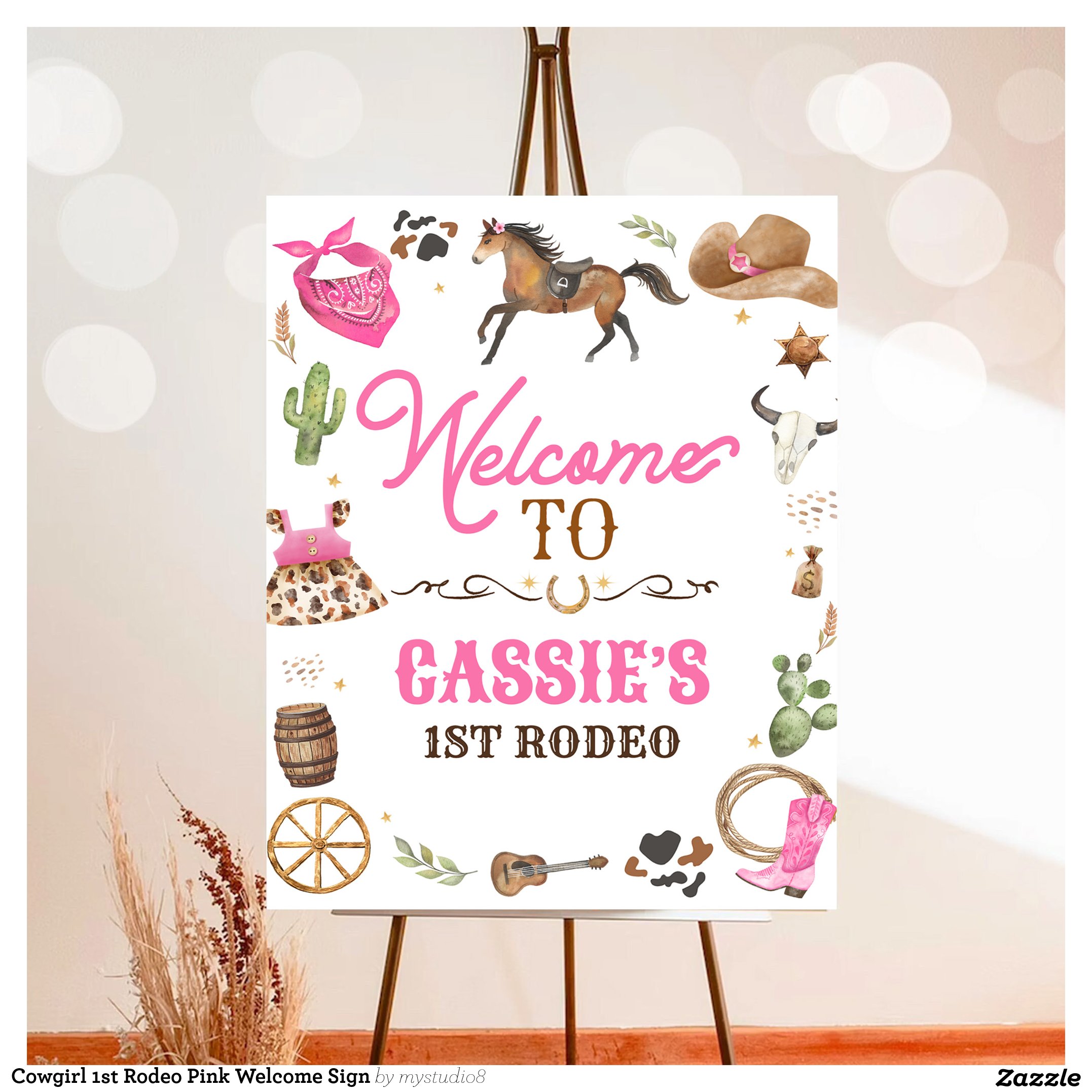 Cowgirl 1st Rodeo Pink Welcome Sign