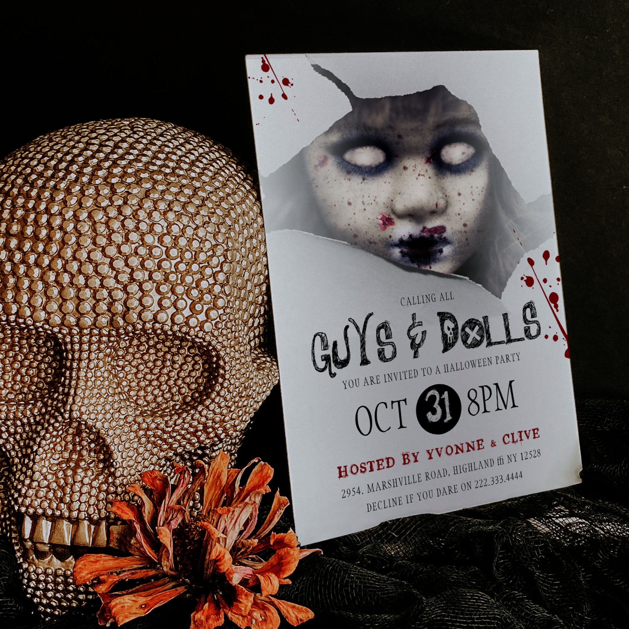 Creepy Zombie Doll Adult Halloween Party Invitation