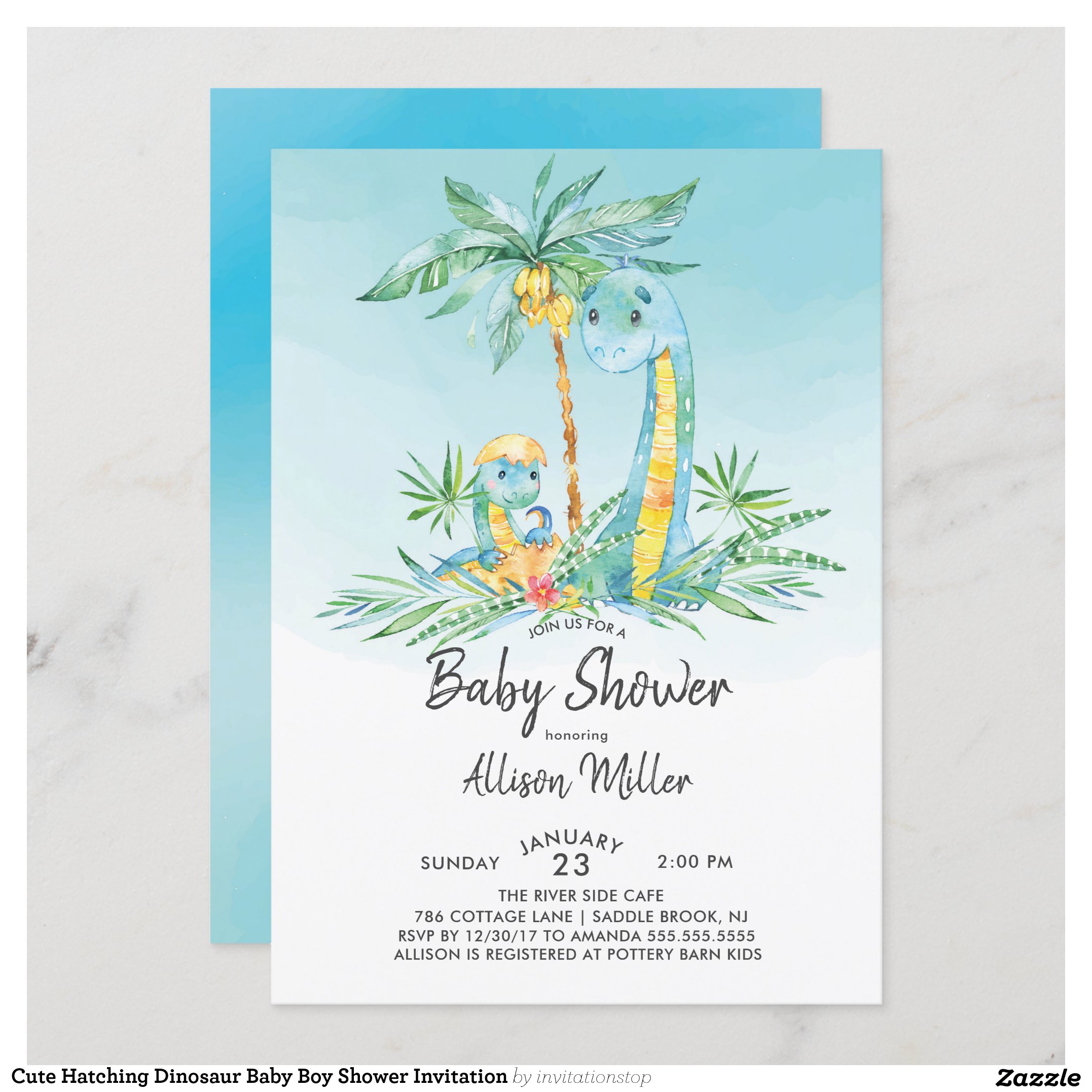 Cute Hatching Dinosaur Baby Boy Shower Invitation