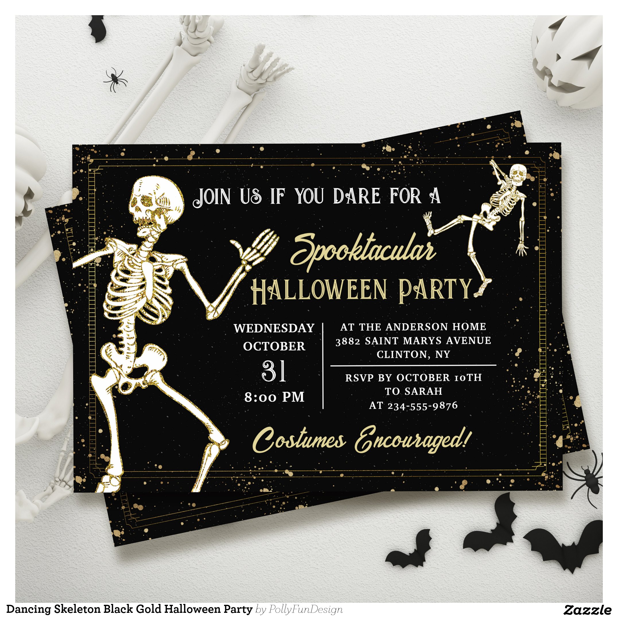 Be the first to review “Dancing Skeleton Black Gold Halloween Party Invitation”