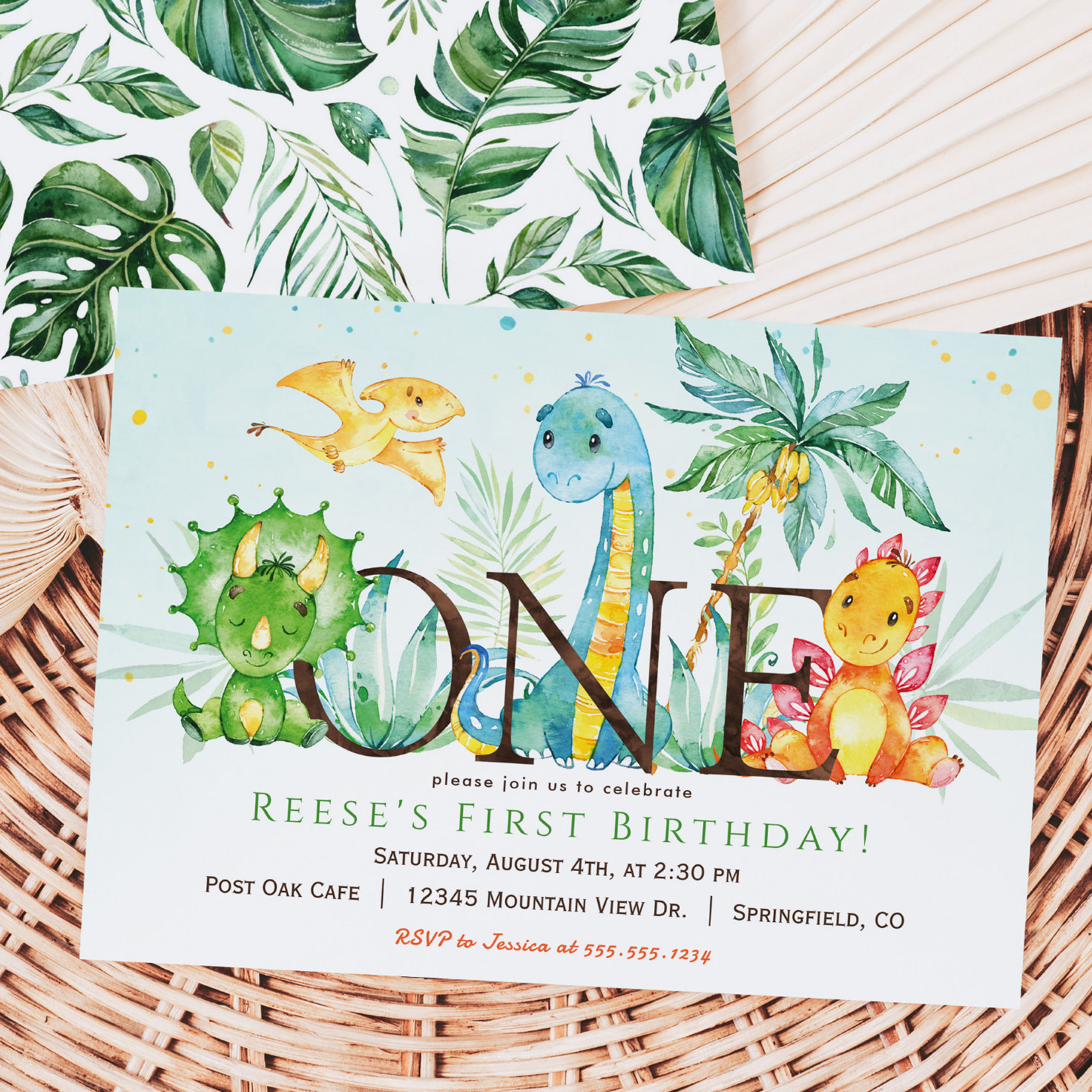 Dinosaur 1st Birthday Invitation