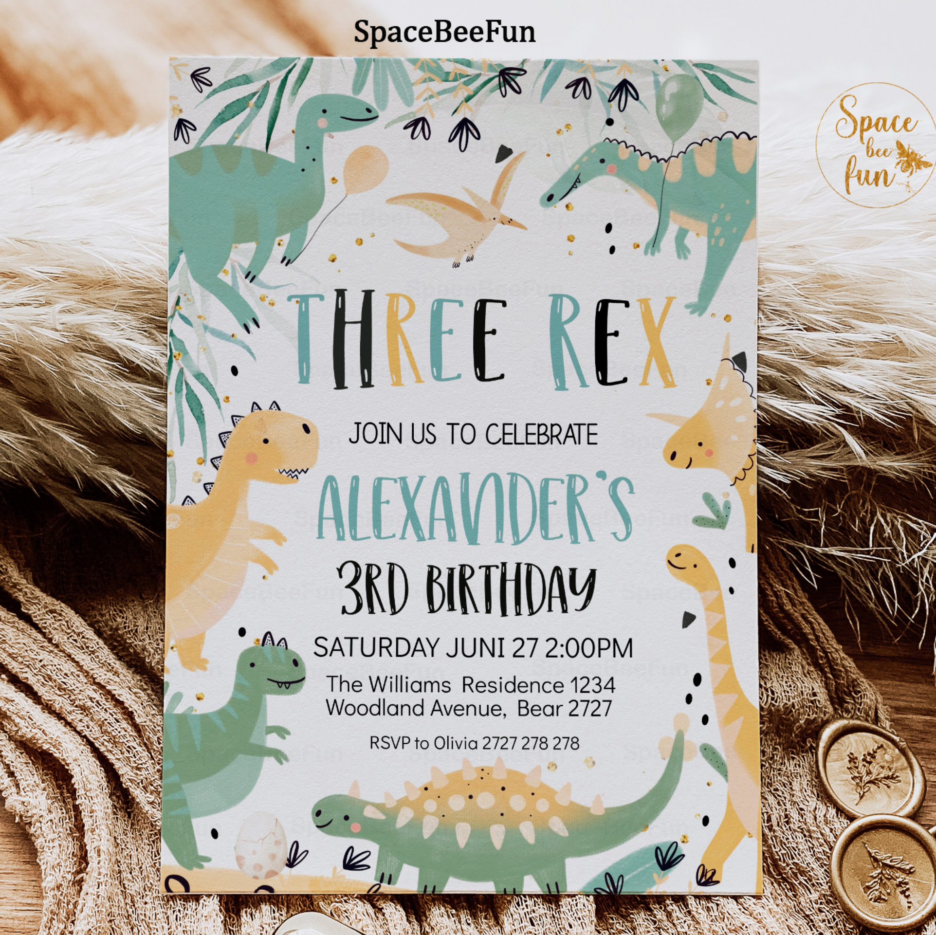 Be the first to review “Dinosaur Birthday Three Rex Invitation Boy Dino”
