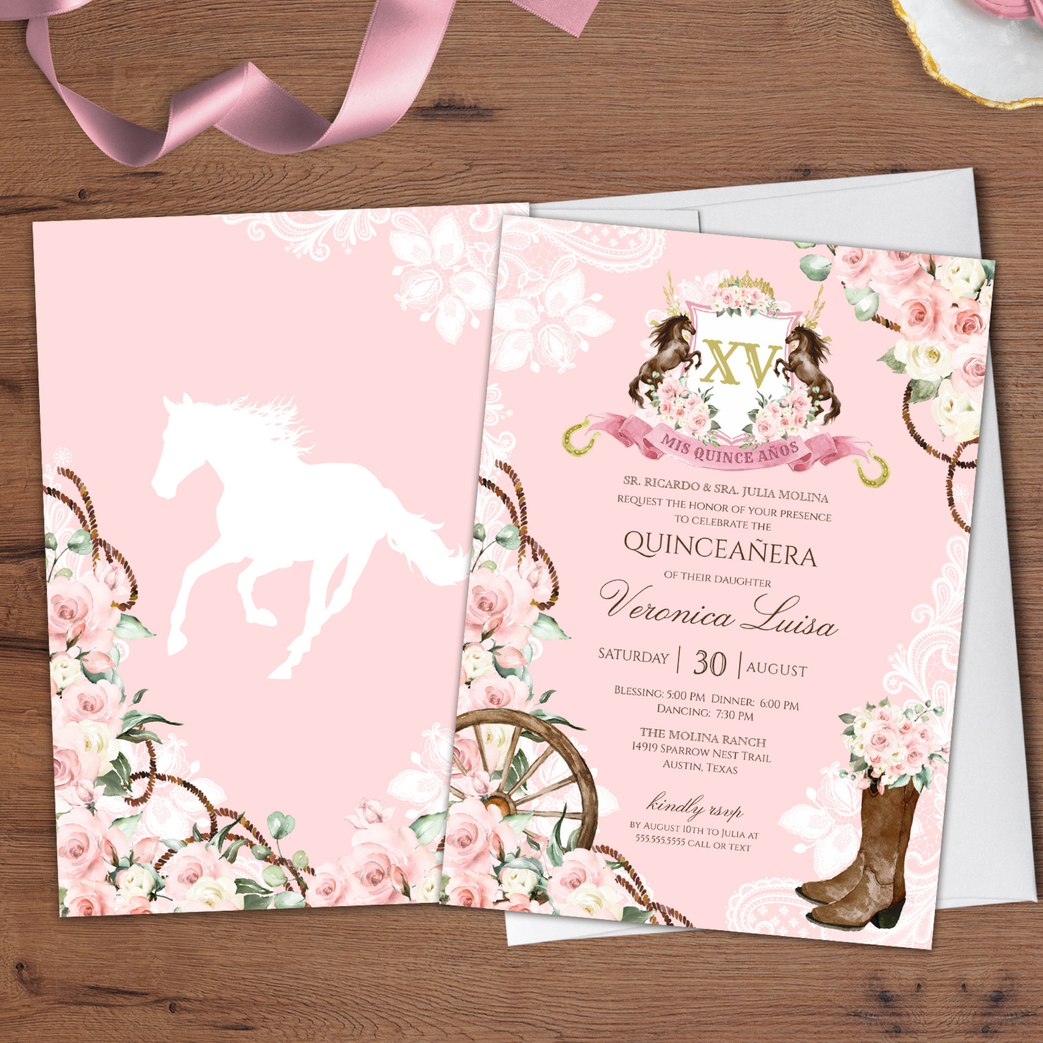 Be the first to review “Elegant Charro Quinceanera with Pink Flowers Invitation”