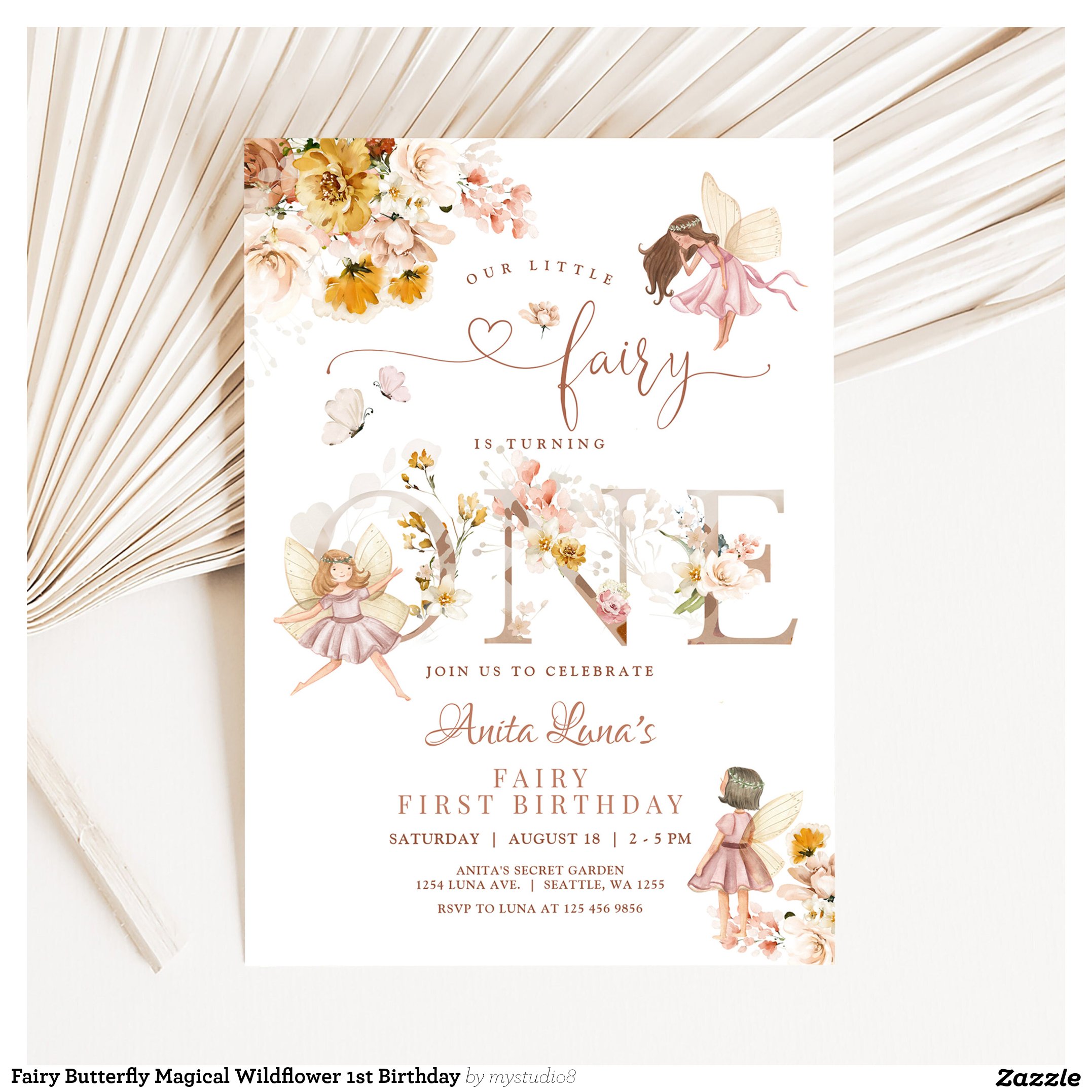 Fairy Butterfly Magical Wildflower 1st Birthday Invitation