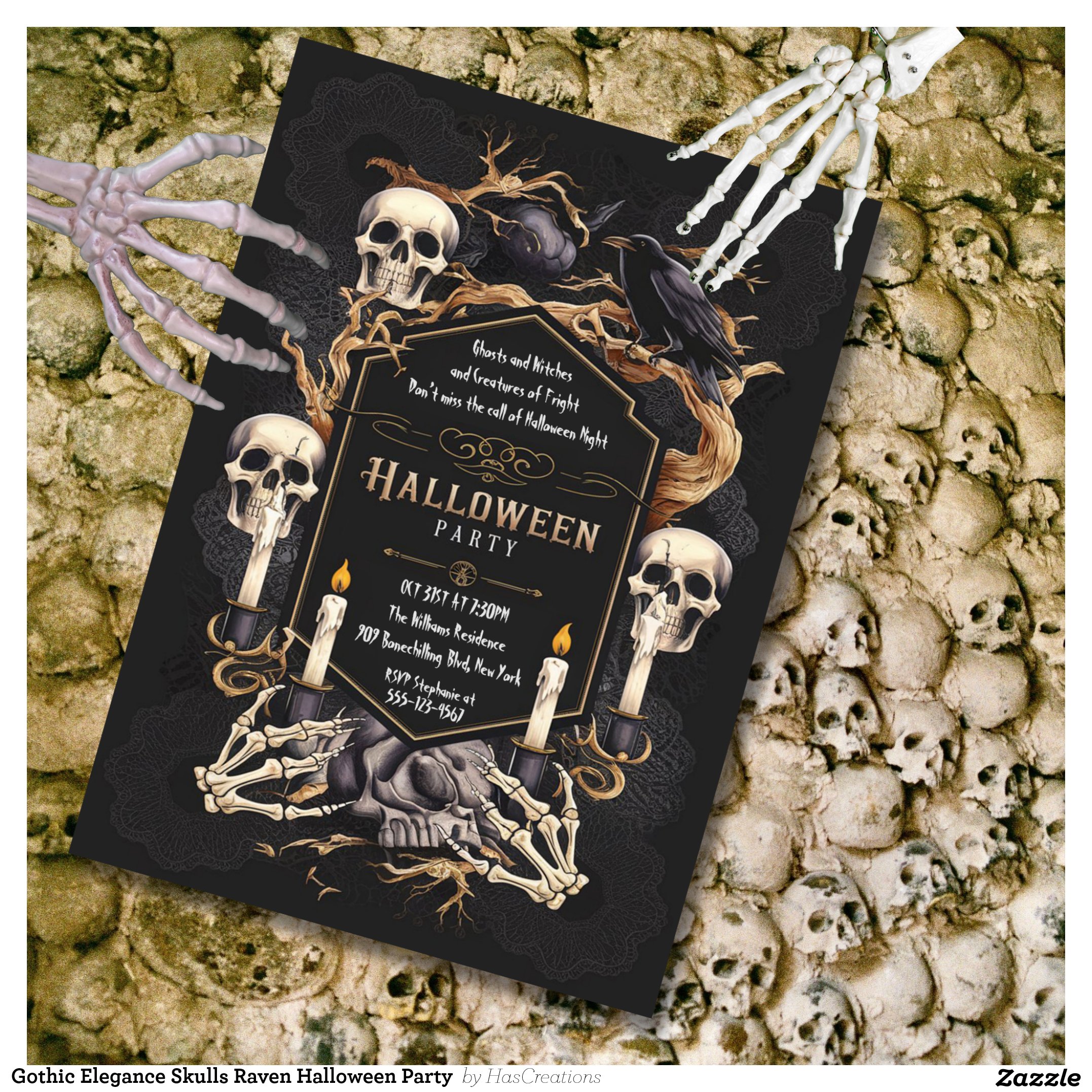 Be the first to review “Gothic Elegance Skulls Raven Halloween Party Invitation”