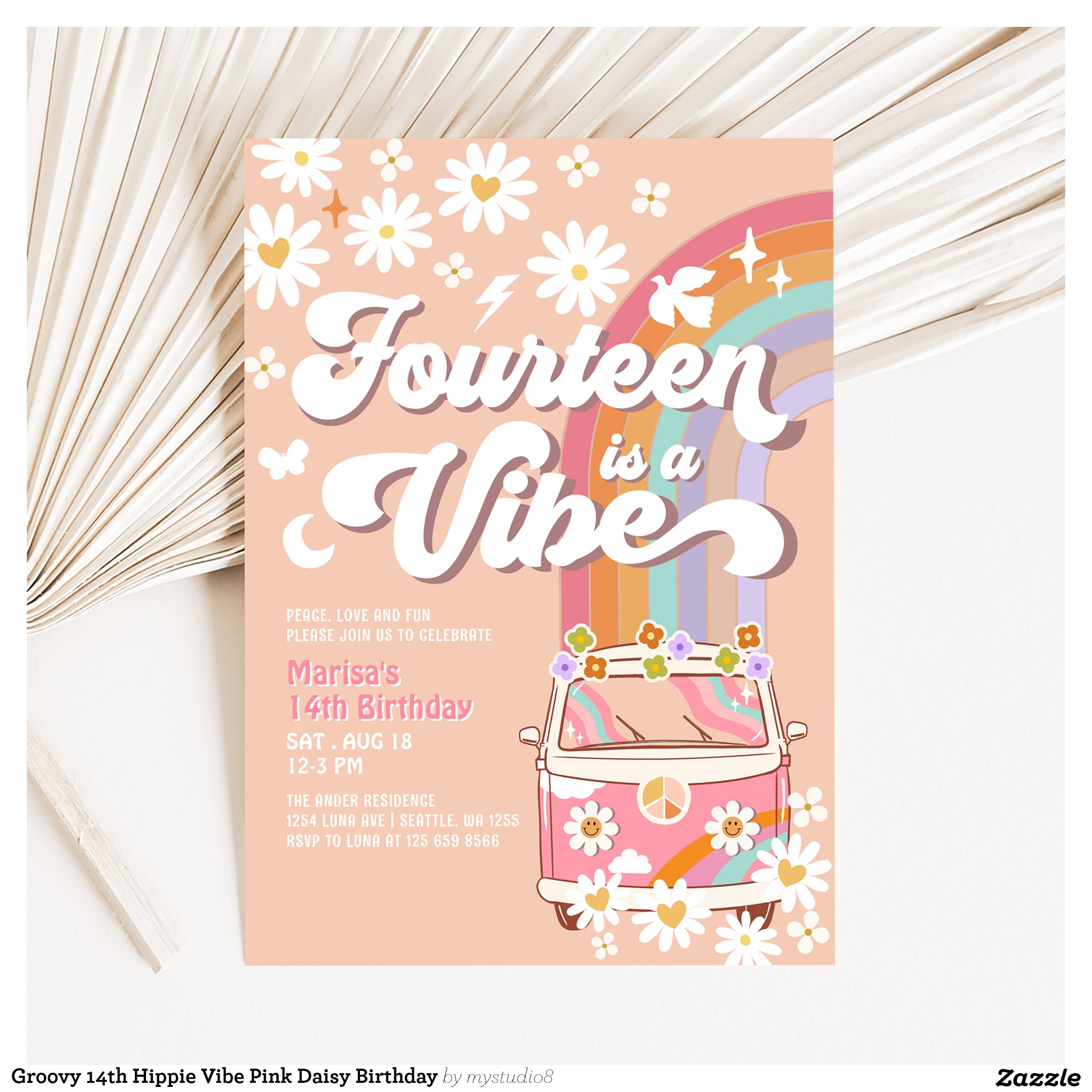 Be the first to review “Groovy 14th Hippie Vibe Pink Daisy Birthday Invitation”
