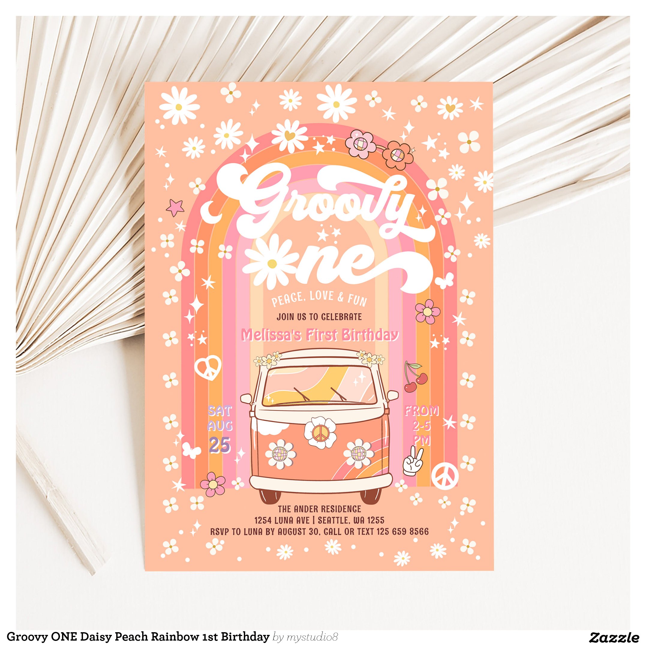 Be the first to review “Groovy ONE Daisy Peach Rainbow 1st Birthday Invitation”