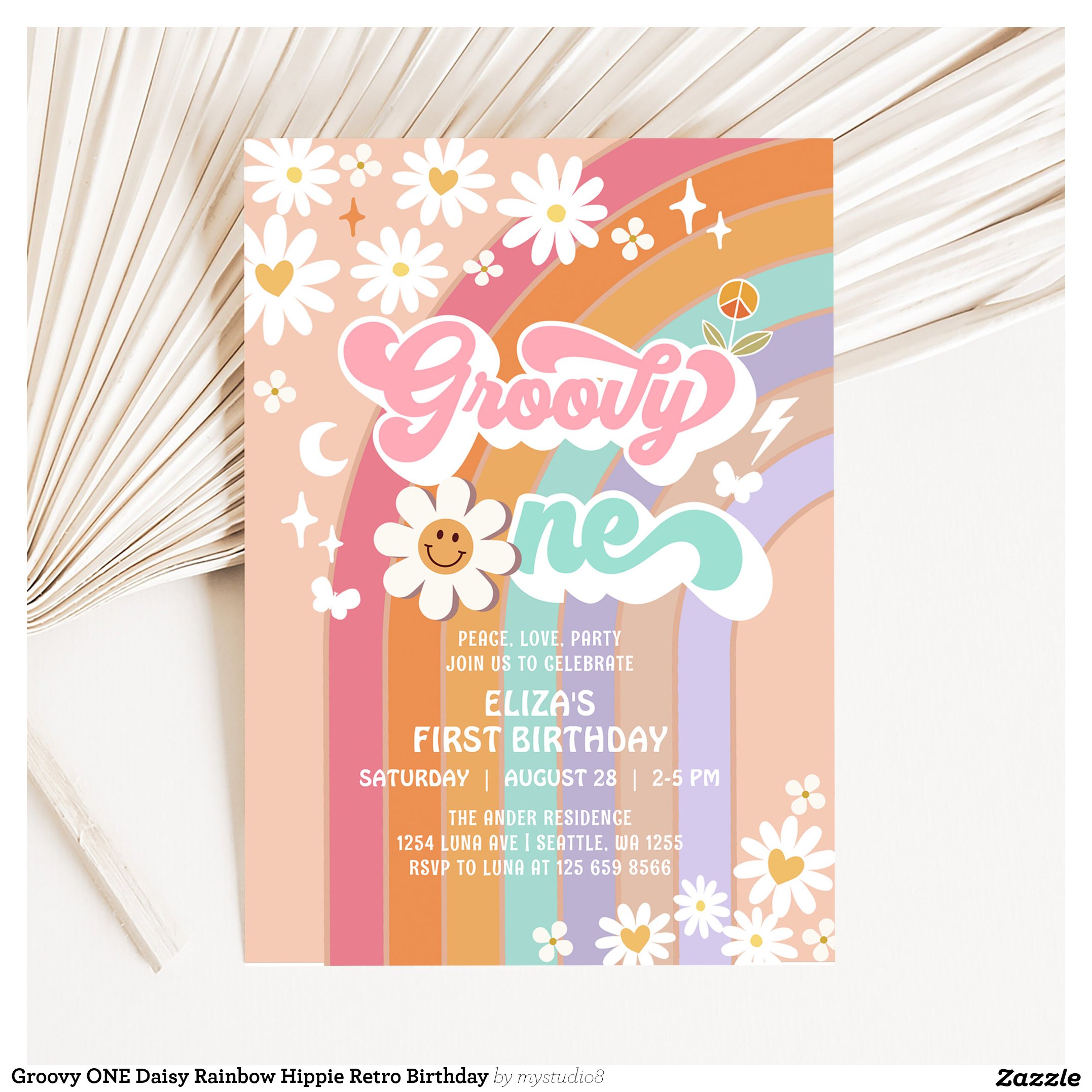 Be the first to review “Groovy ONE Daisy Rainbow Hippie Retro Birthday Invitation”