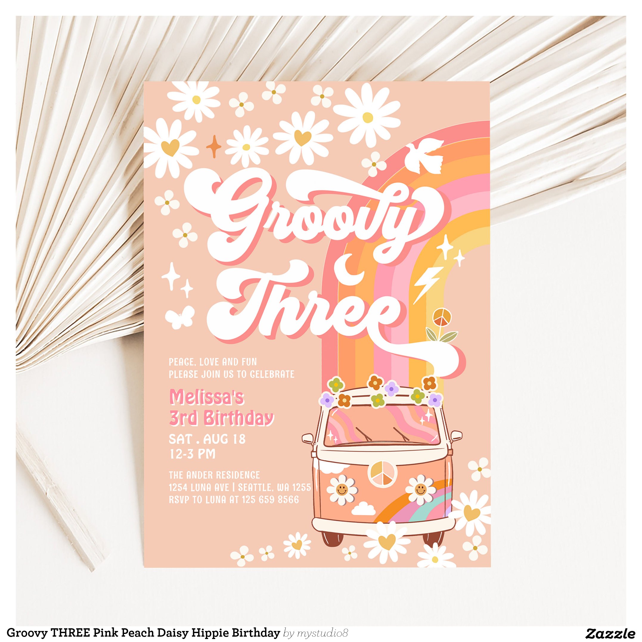 Be the first to review “Groovy THREE Pink Peach Daisy Hippie Birthday Invitation”