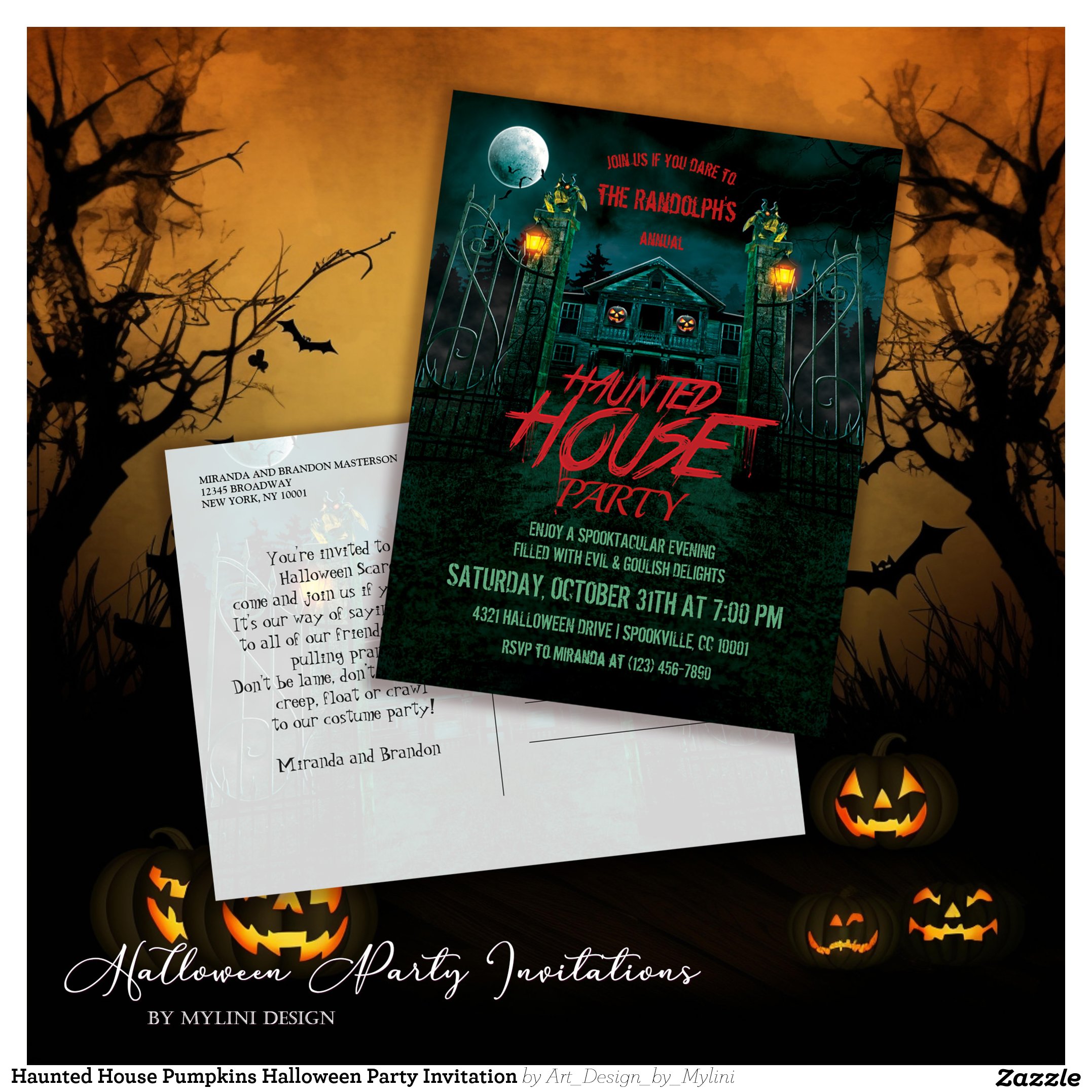 Be the first to review “Haunted House Pumpkins Halloween Party Invitation Postcard”