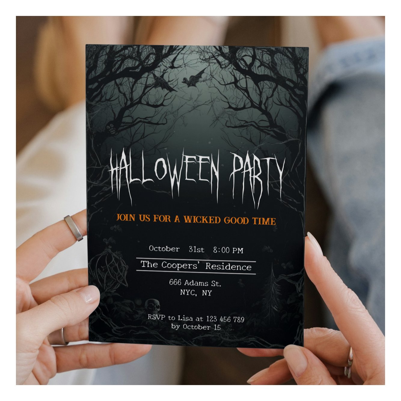 Be the first to review “Haunting Dark Trees Creepy Halloween Party Invitation”
