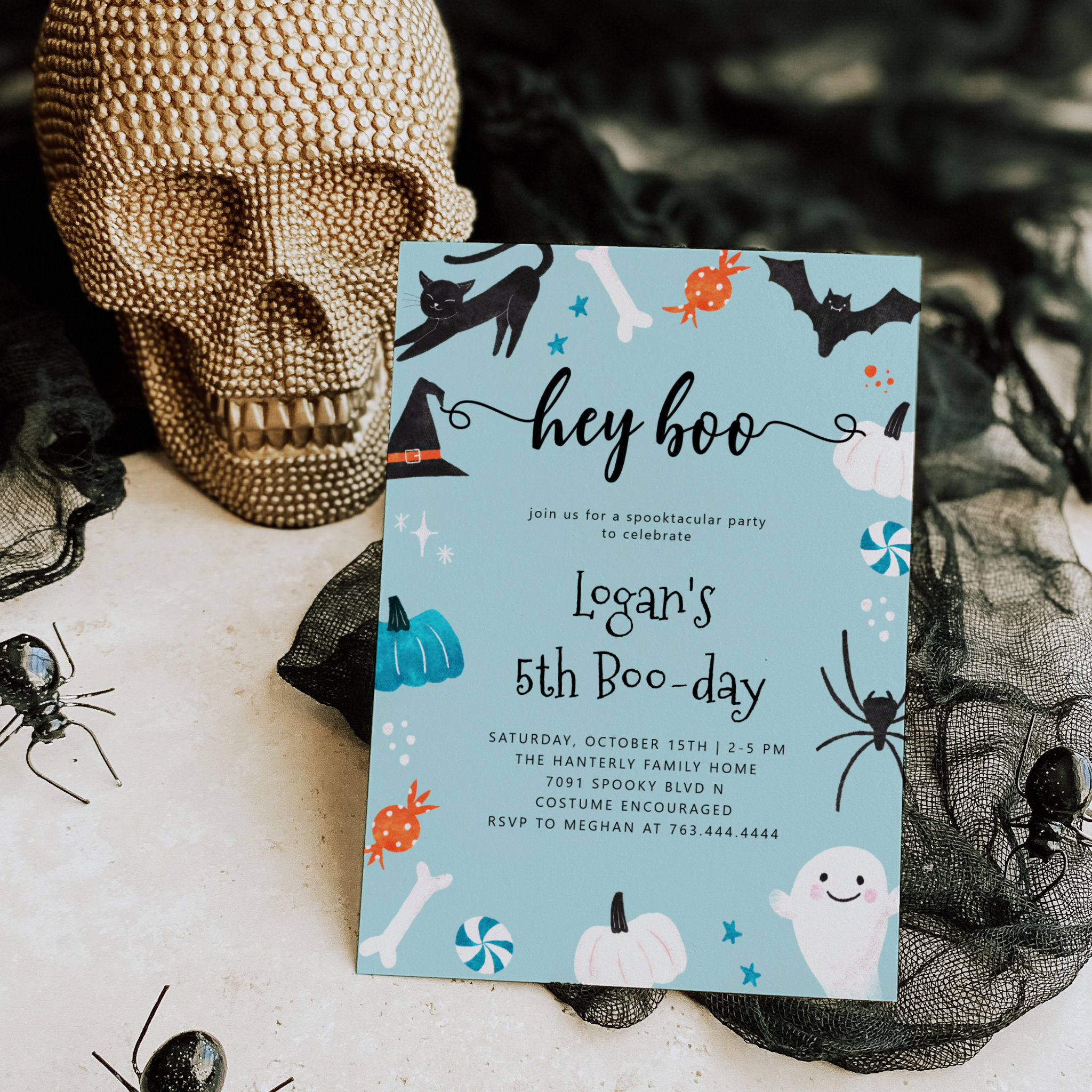 Be the first to review “Hey Boo Halloween Birthday Blue Invitation”
