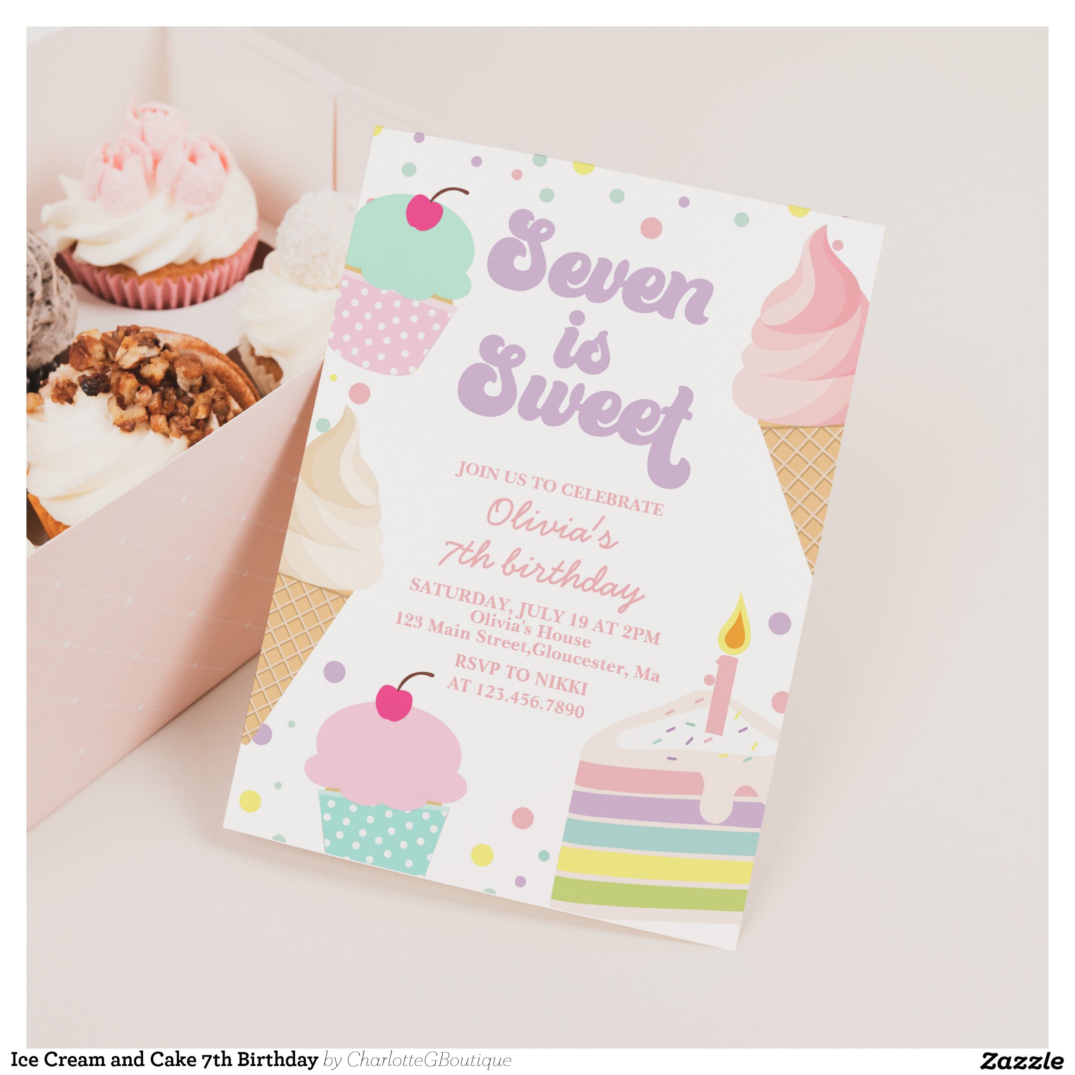 Be the first to review “Ice Cream and Cake 7th Birthday Invitation”