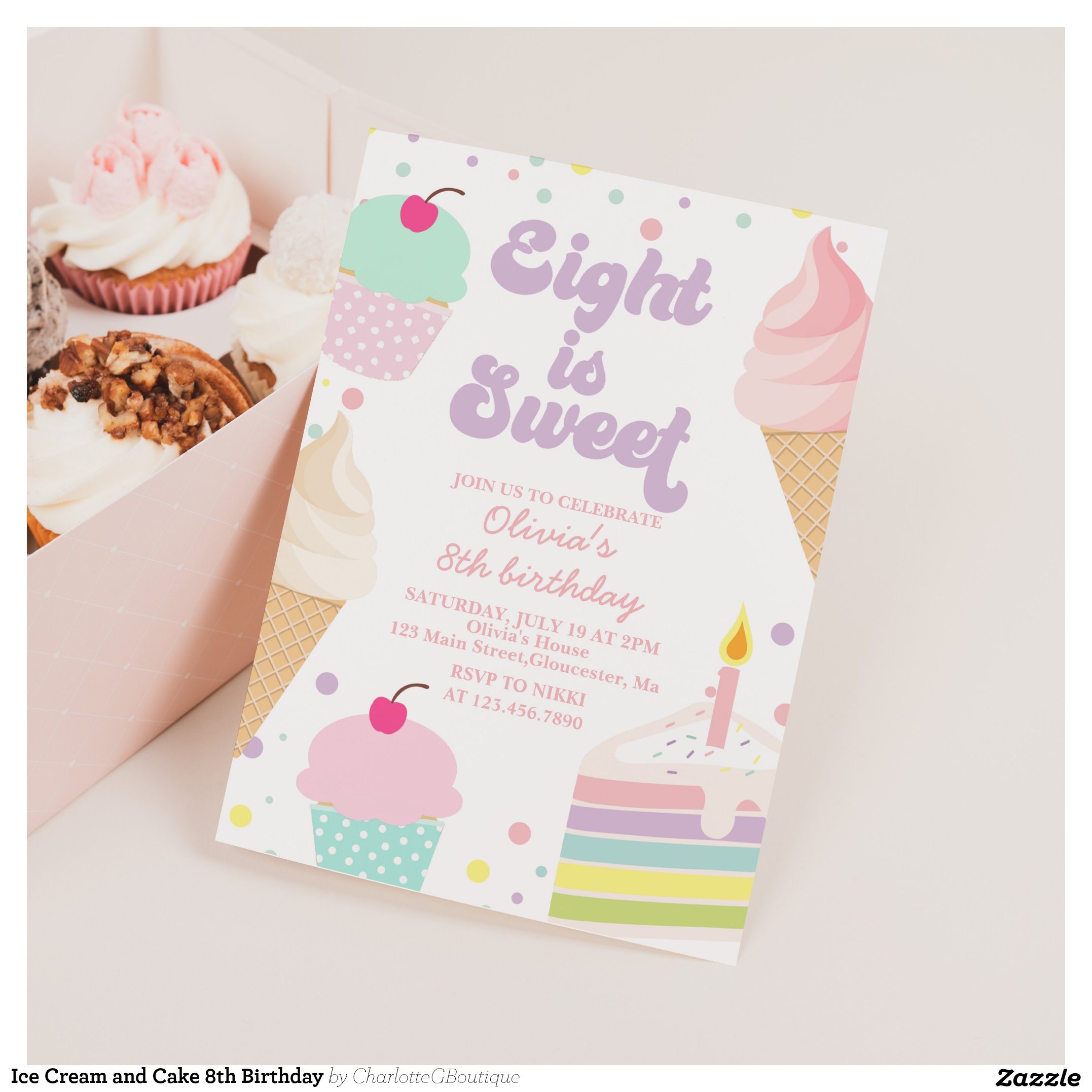 Be the first to review “Ice Cream and Cake 8th Birthday Invitation”