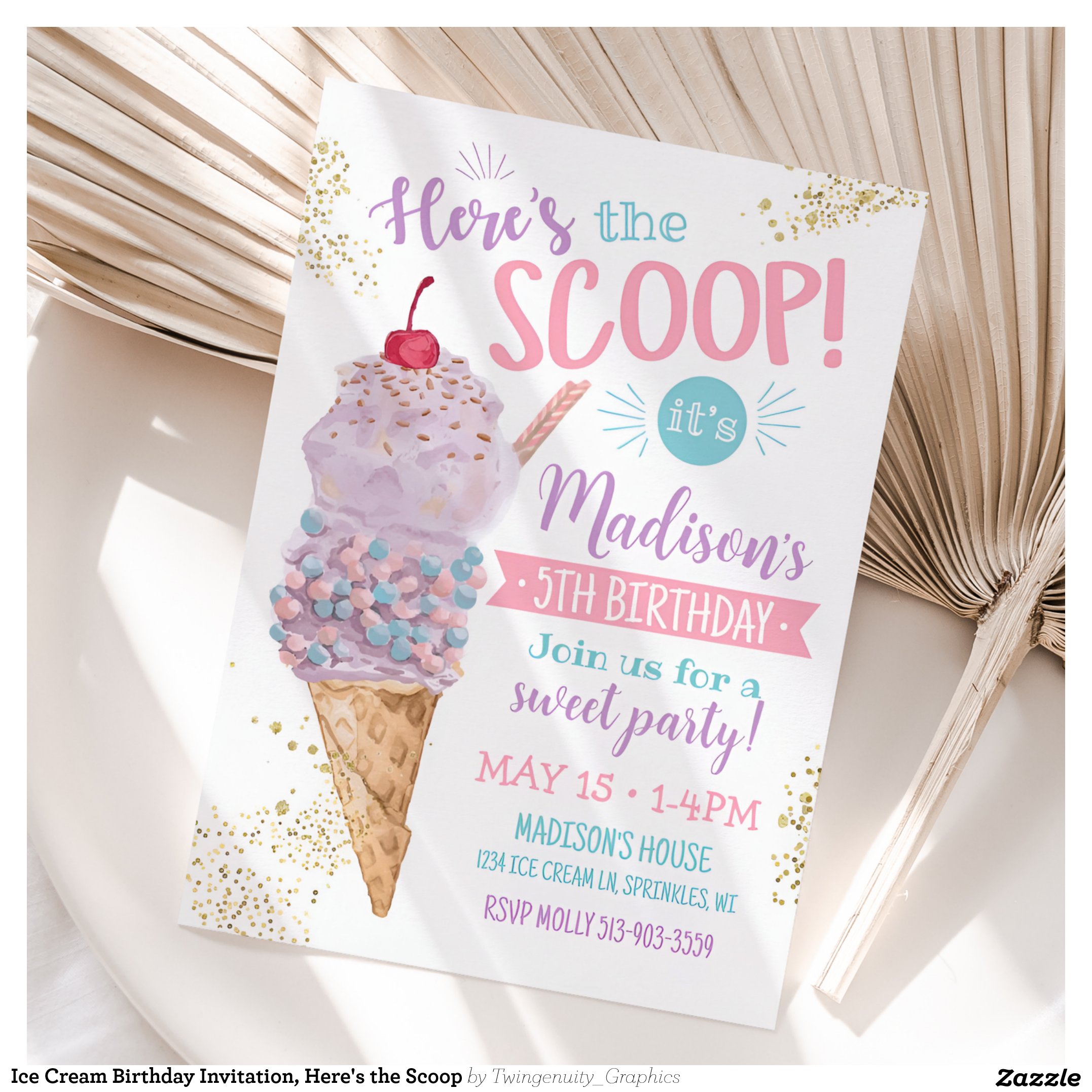 Ice Cream Birthday Invitation, Here’s the Scoop Invitation