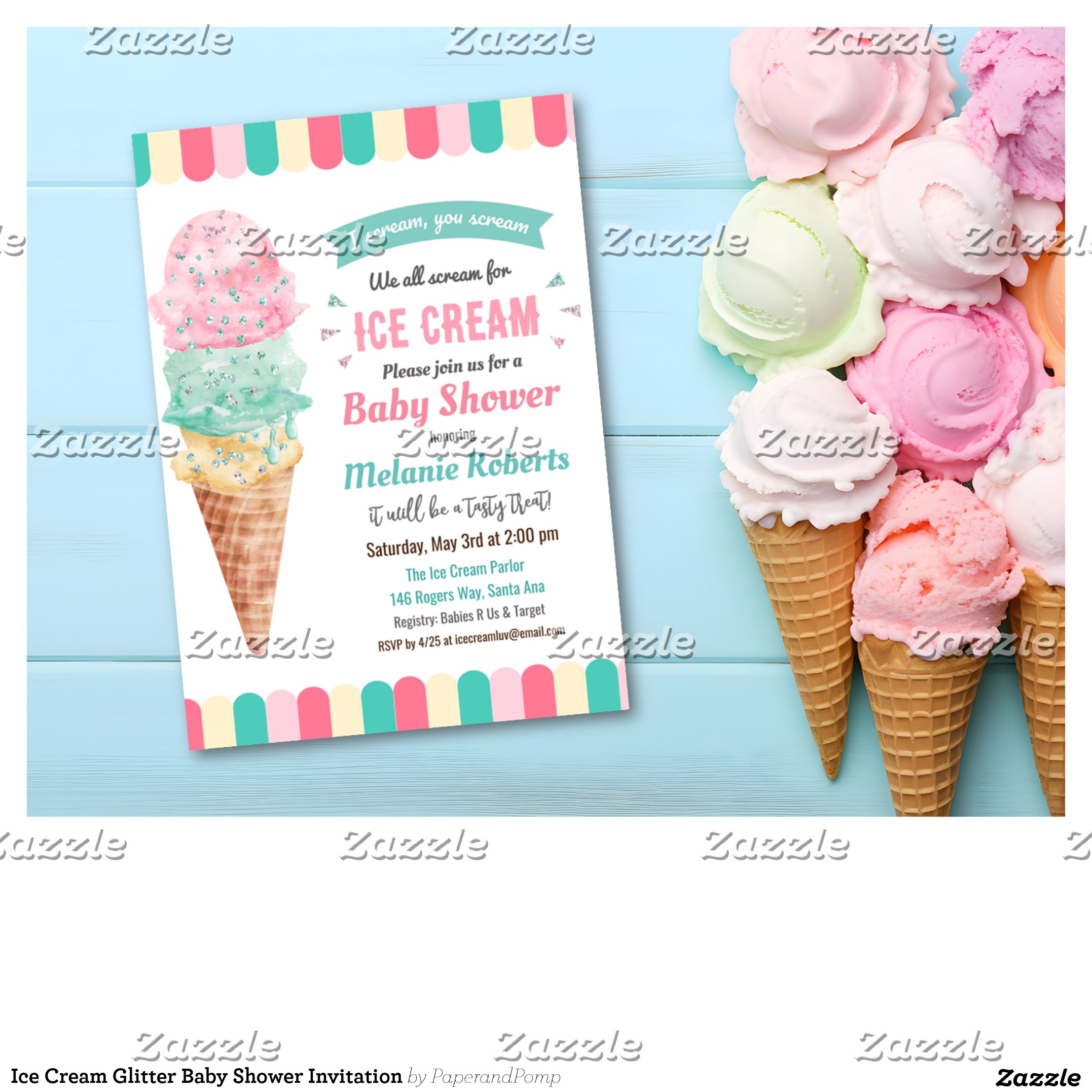 Be the first to review “Ice Cream Glitter Baby Shower Invitation”