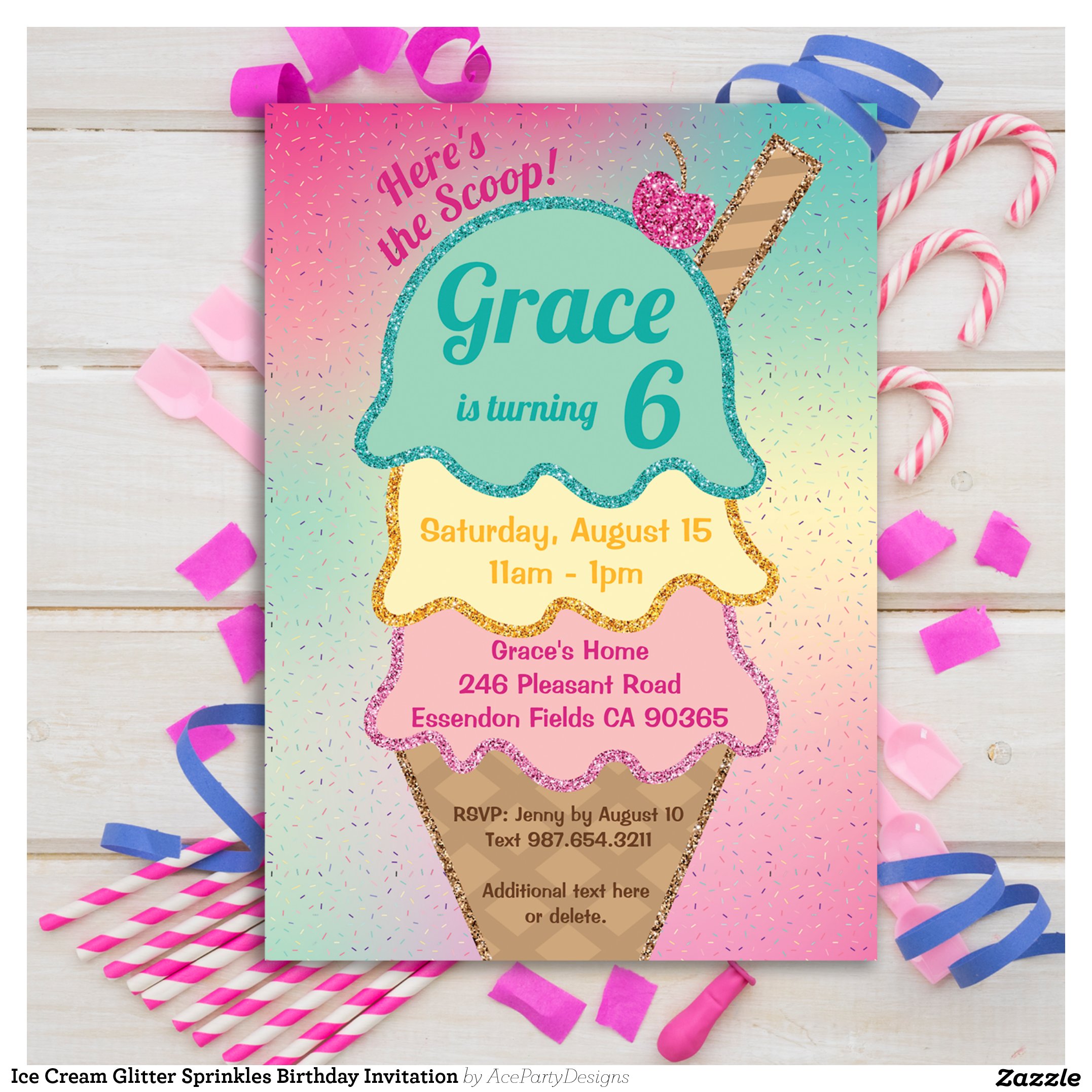 Ice Cream Glitter Sprinkles Birthday Invitation