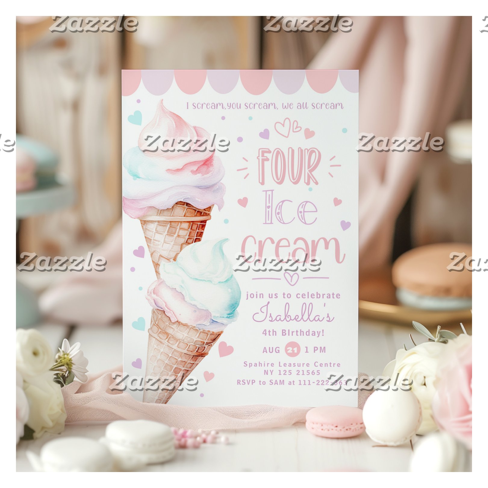 Be the first to review “Ice cream pastel pink 4th Birthday Invitation”
