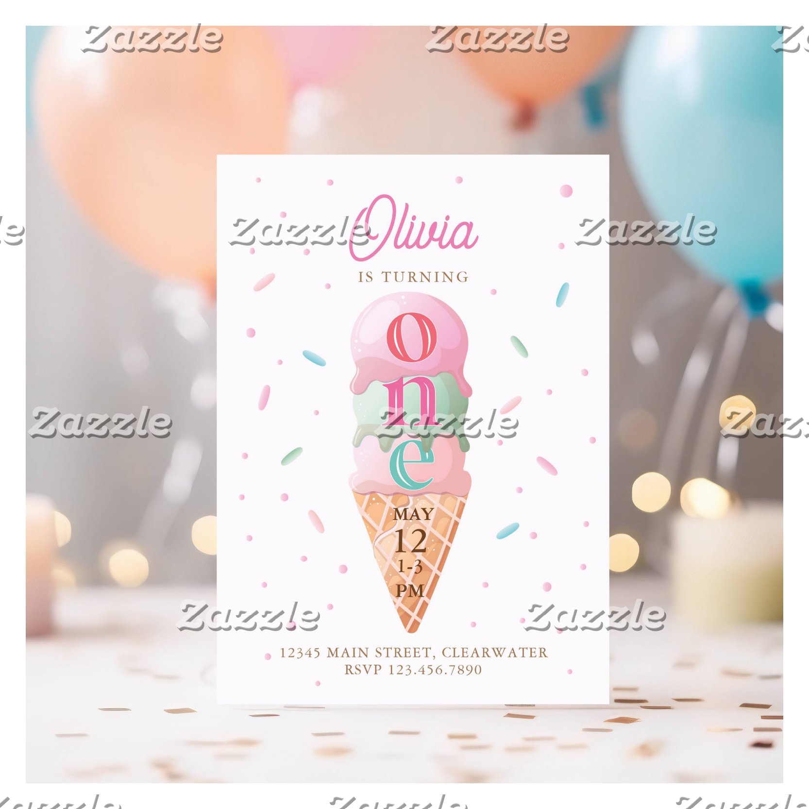 Ice Cream Sweet One Birthday Party Invitation