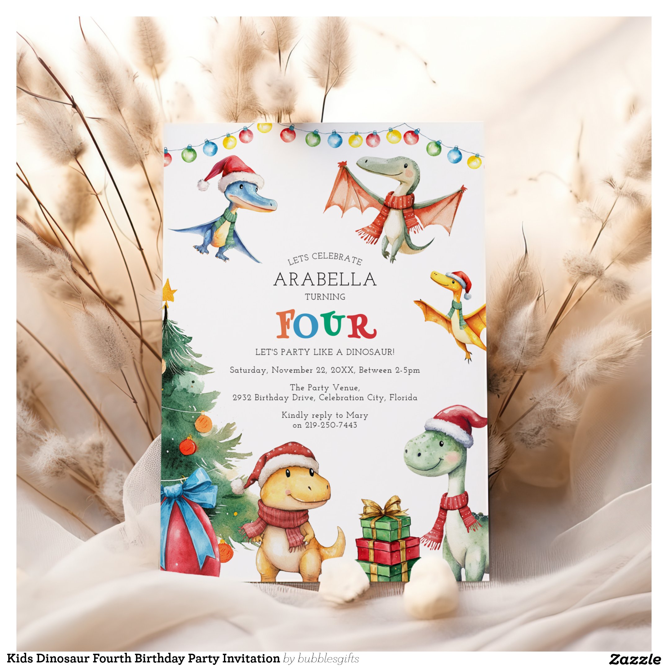 Be the first to review “Kids Dinosaur Fourth Birthday Party Invitation”