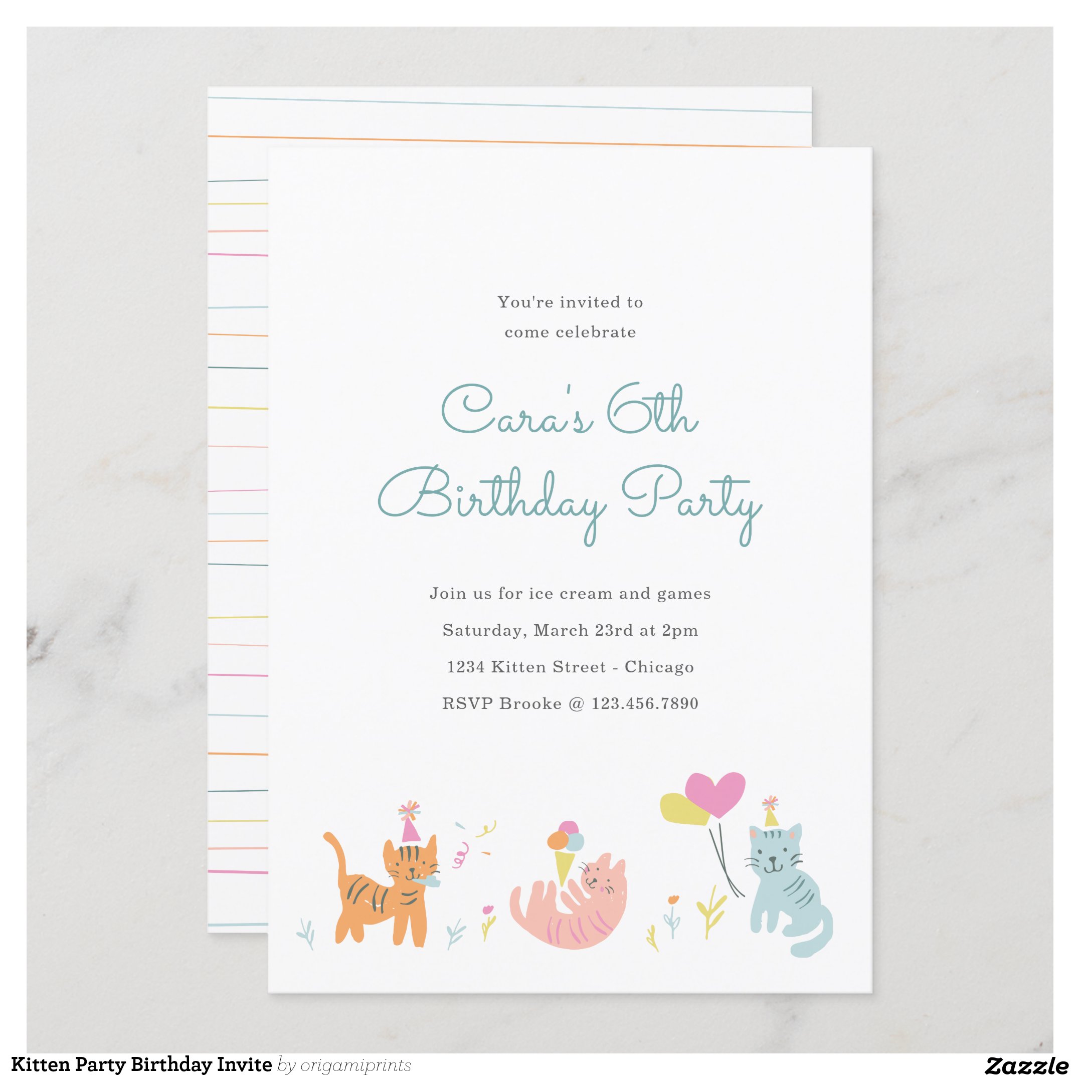 Kitten Party Birthday Invite