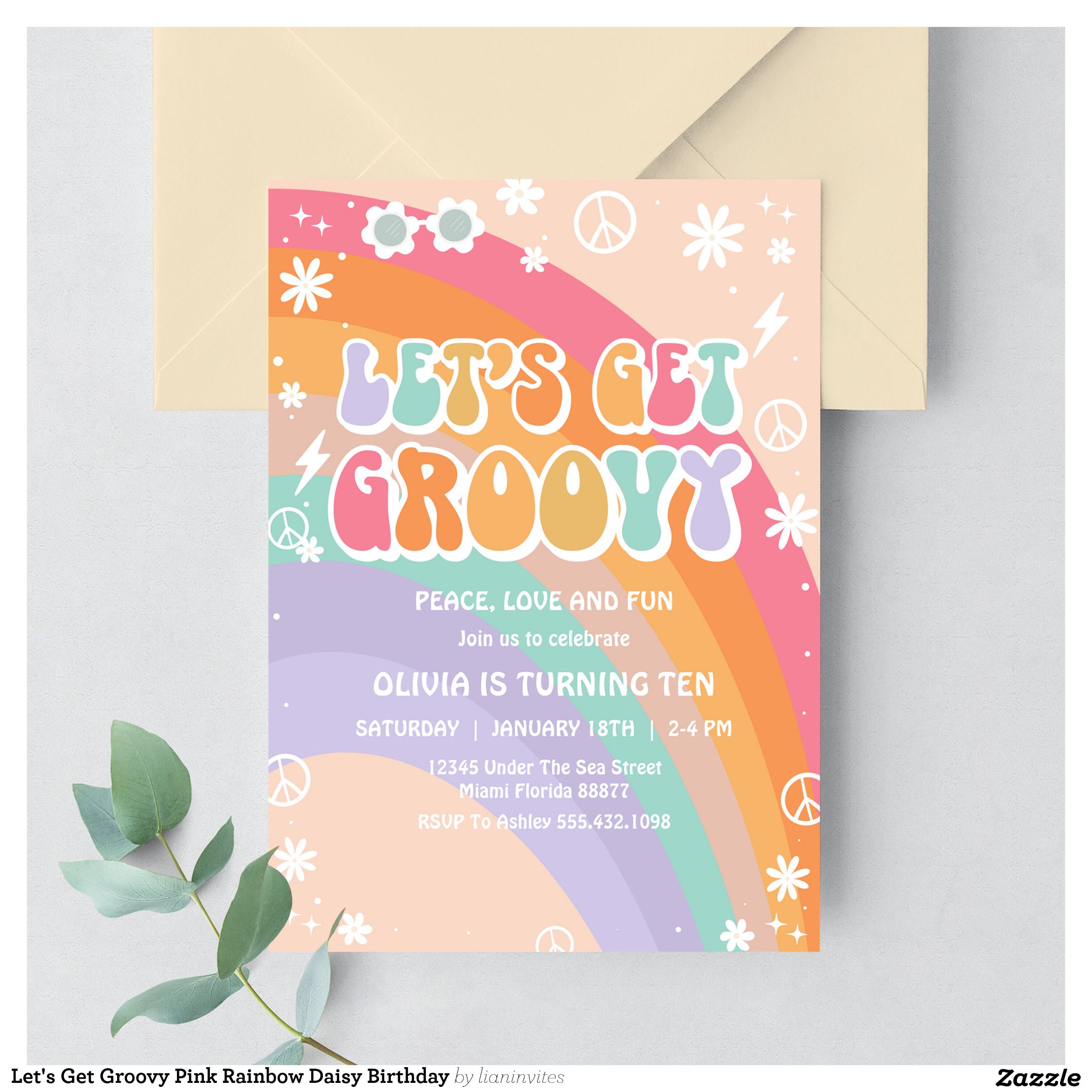 Be the first to review “Let’s Get Groovy Pink Rainbow Daisy Birthday Invitation”