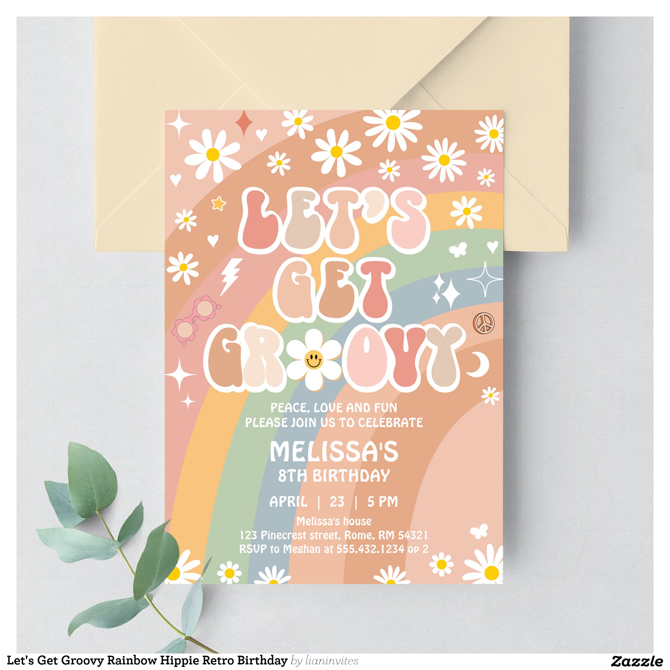 Let’s Get Groovy Rainbow Hippie Retro Birthday Invitation