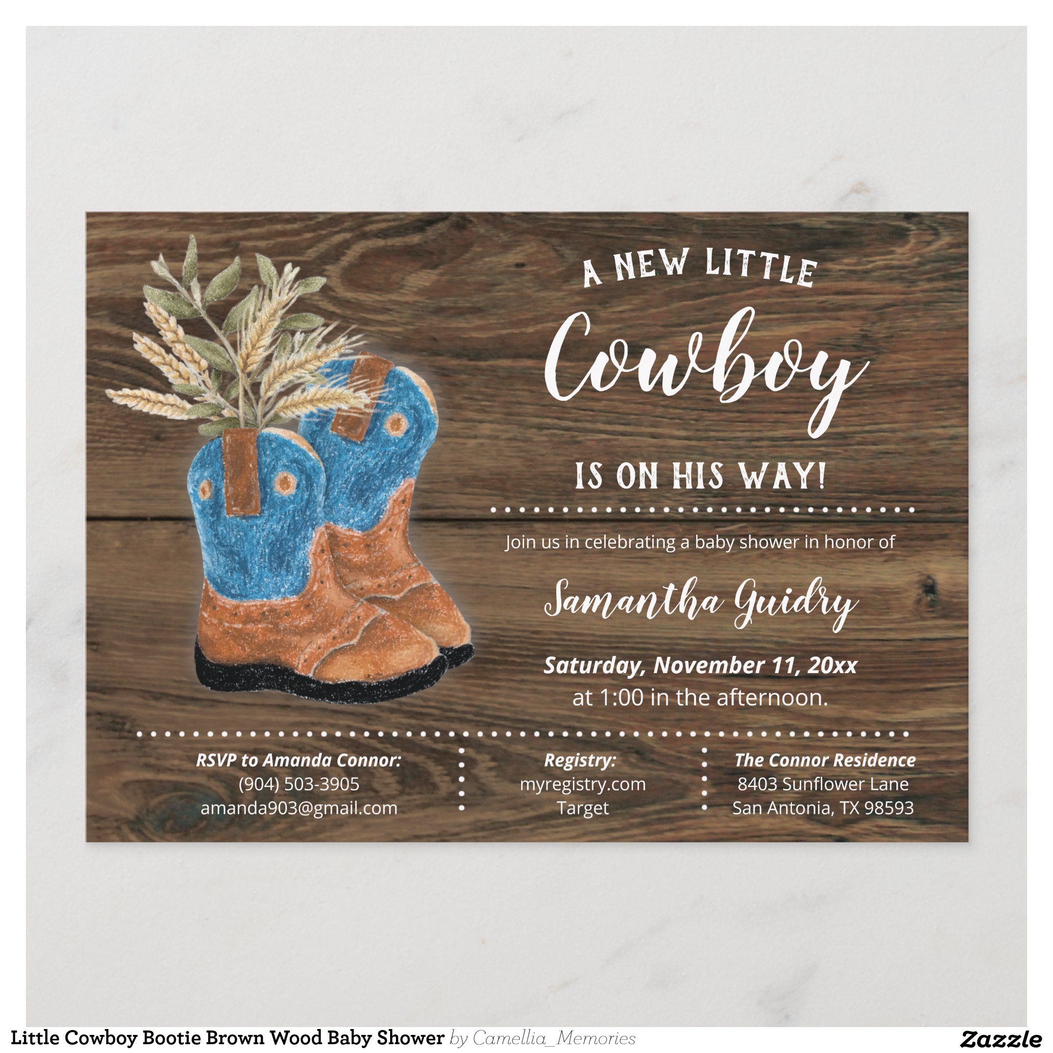 Be the first to review “Little Cowboy Bootie Brown Wood Baby Shower Invitation”