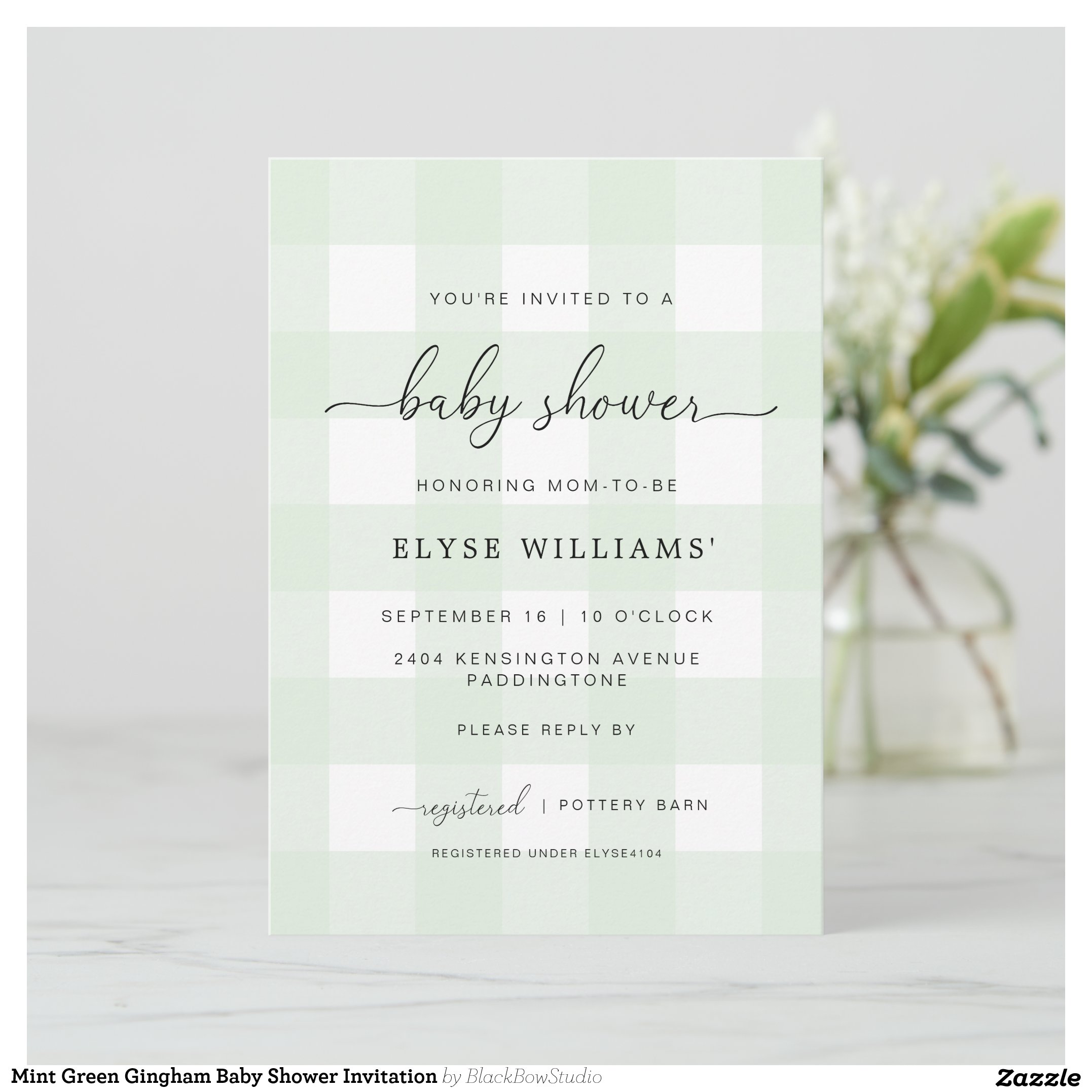 Be the first to review “Mint Green Gingham Baby Shower Invitation”