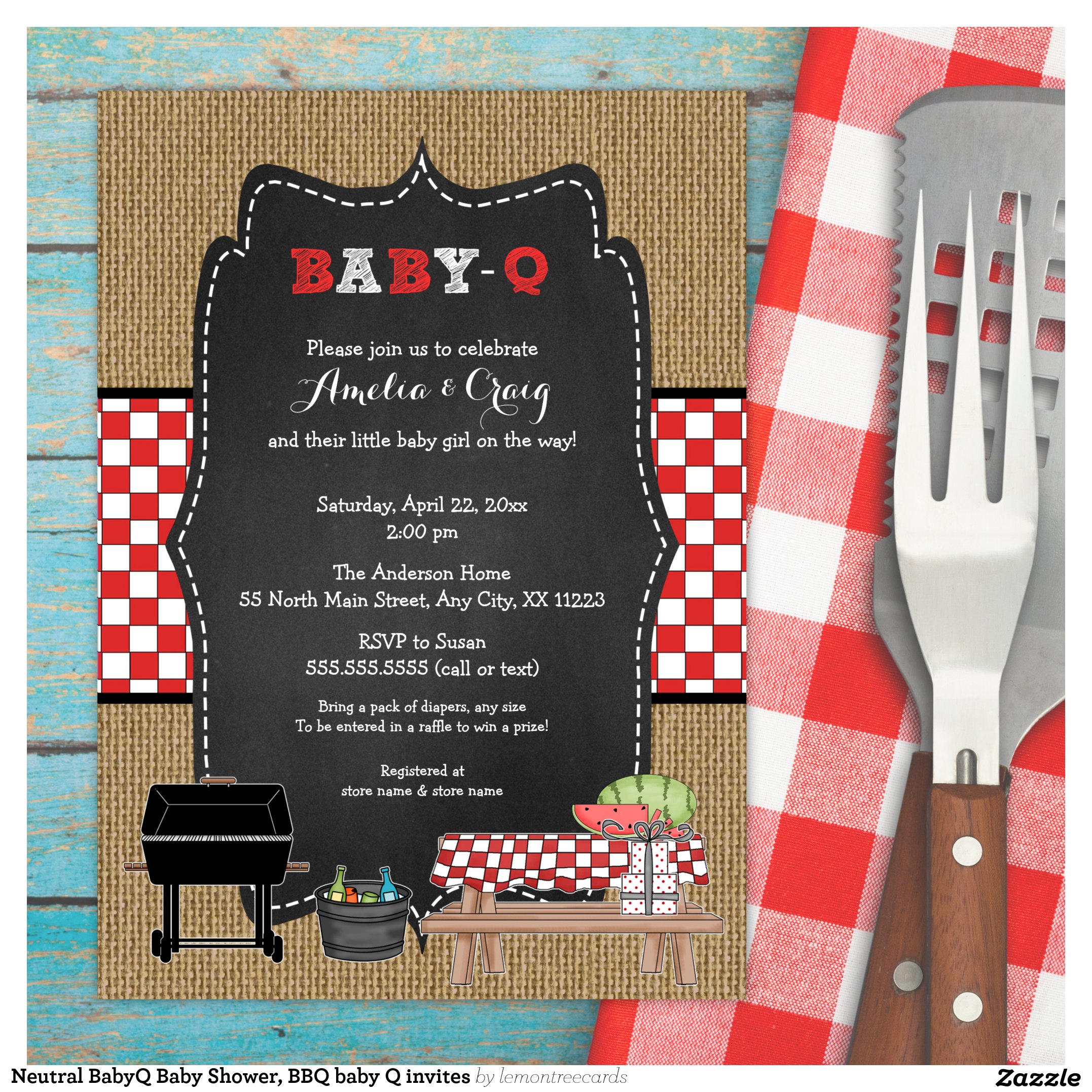 Neutral BabyQ Baby Shower, BBQ baby Q invites
