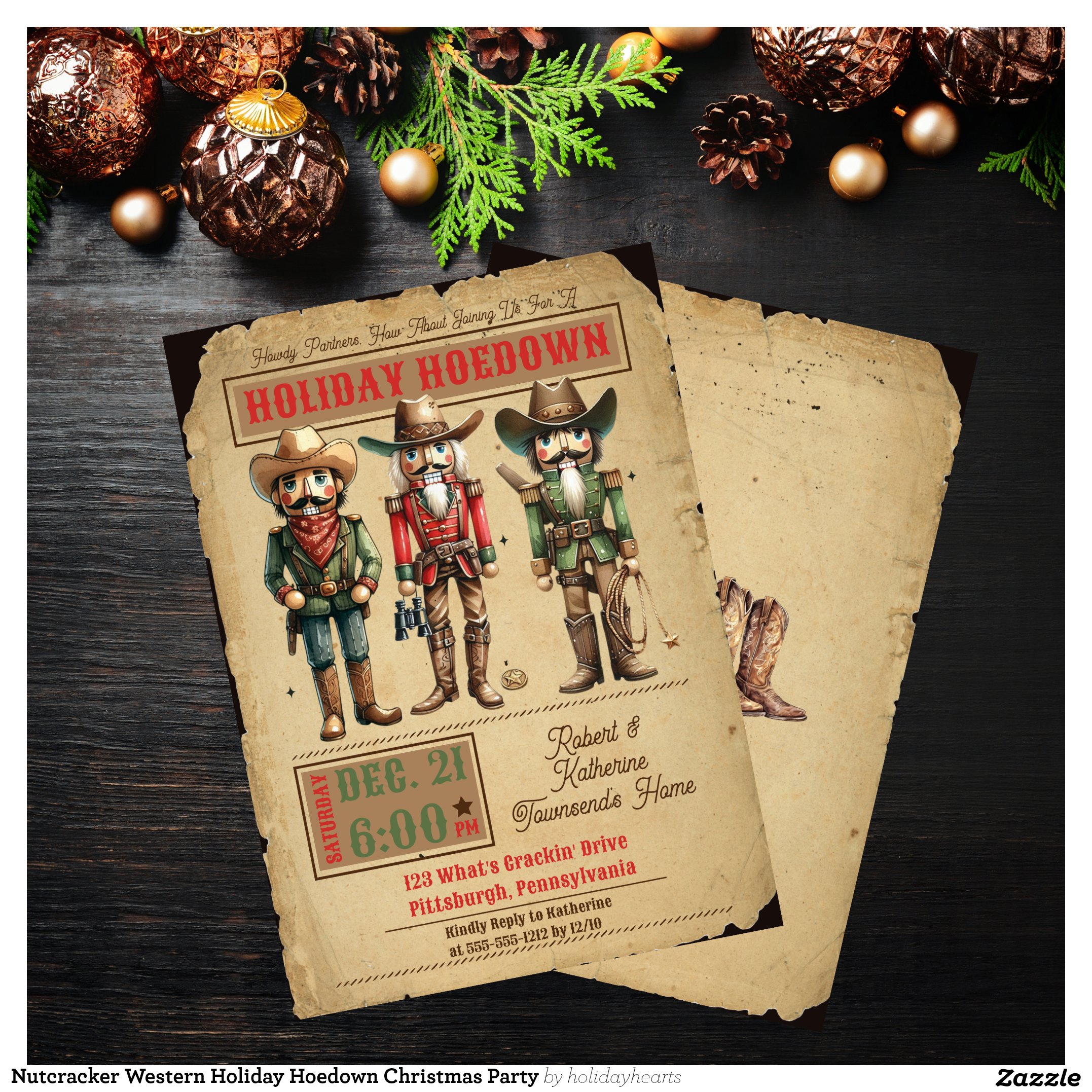Nutcracker Western Holiday Hoedown Christmas Party Invitation