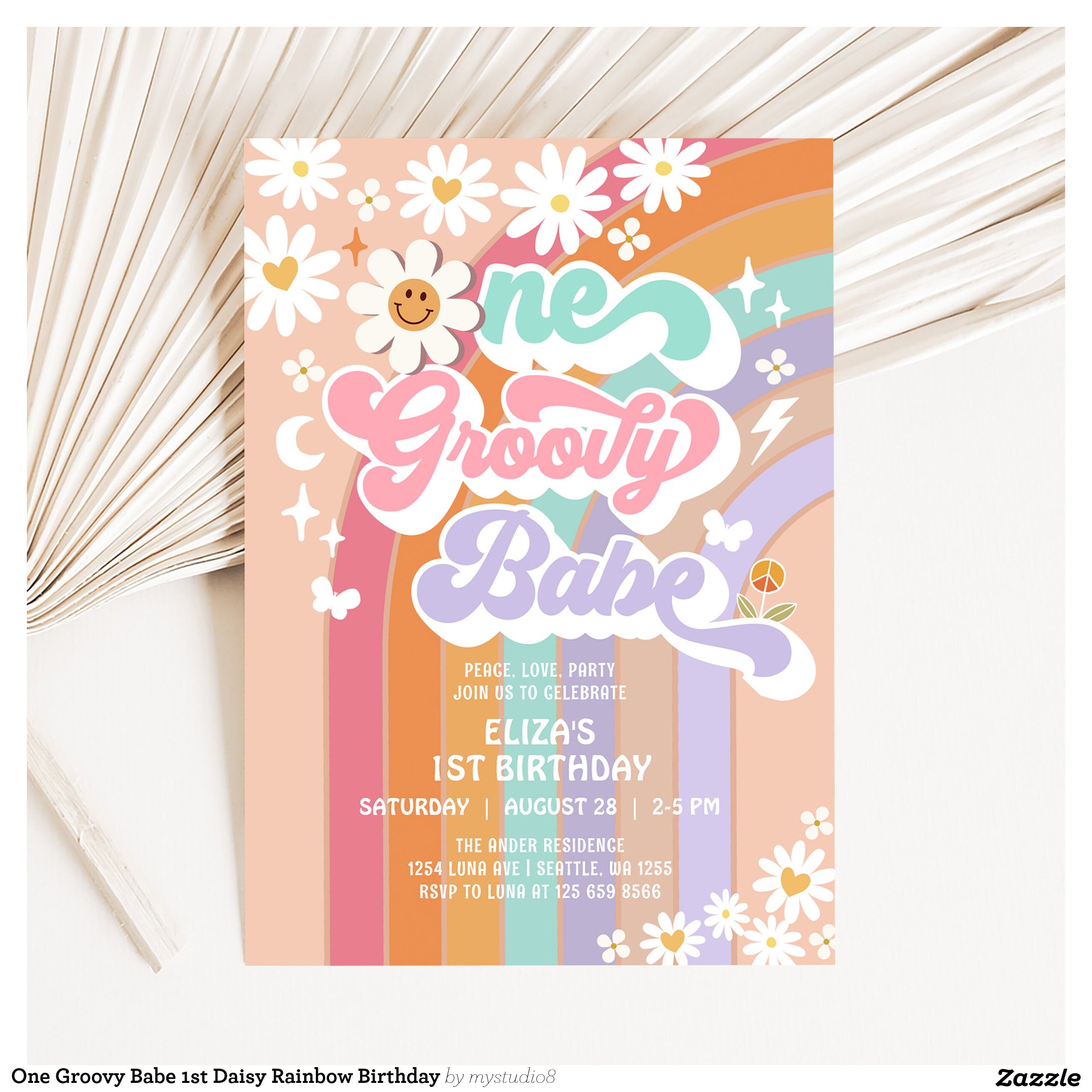 One Groovy Babe 1st Daisy Rainbow Birthday Invitation