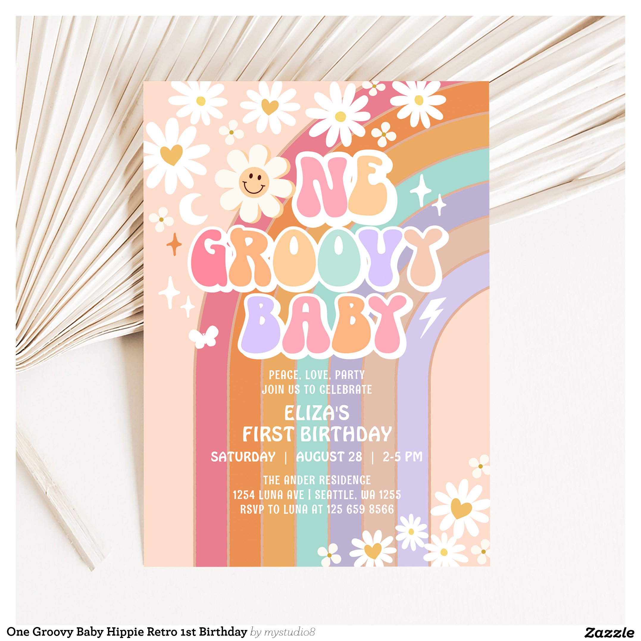 One Groovy Baby Hippie Retro 1st Birthday Invitation