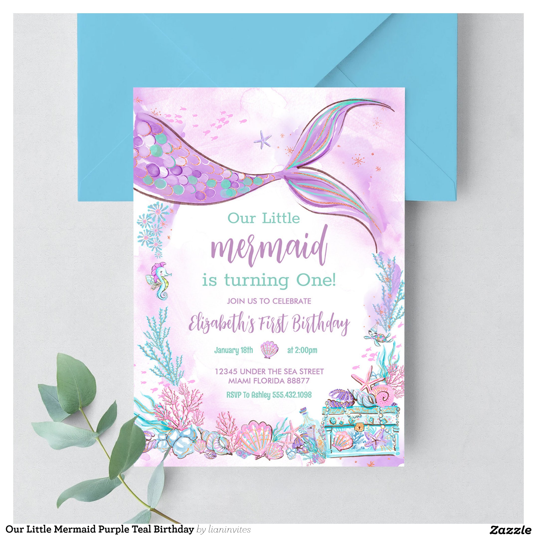 Be the first to review “Our Little Mermaid Purple Teal Birthday Invitation”