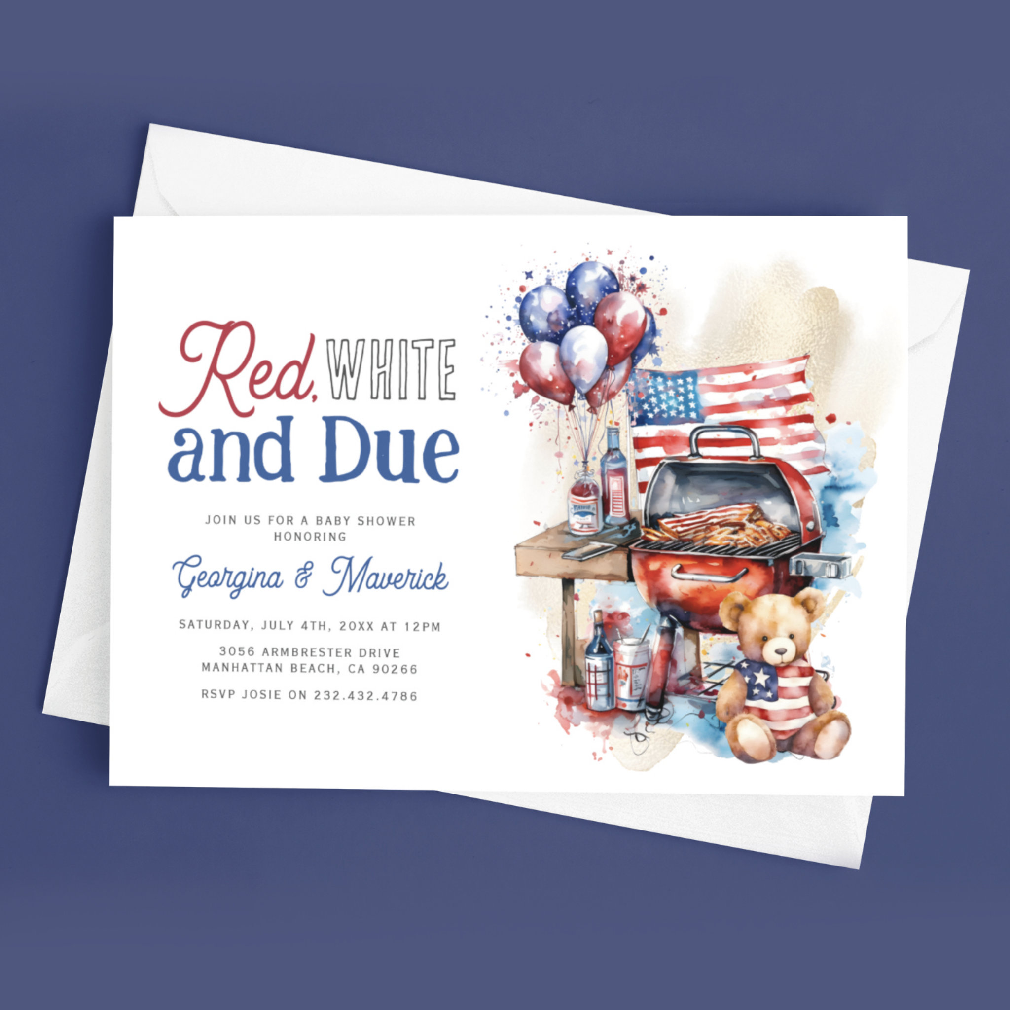 Be the first to review “Patriotic BBQ Red, White & Due Baby Shower Invitation”